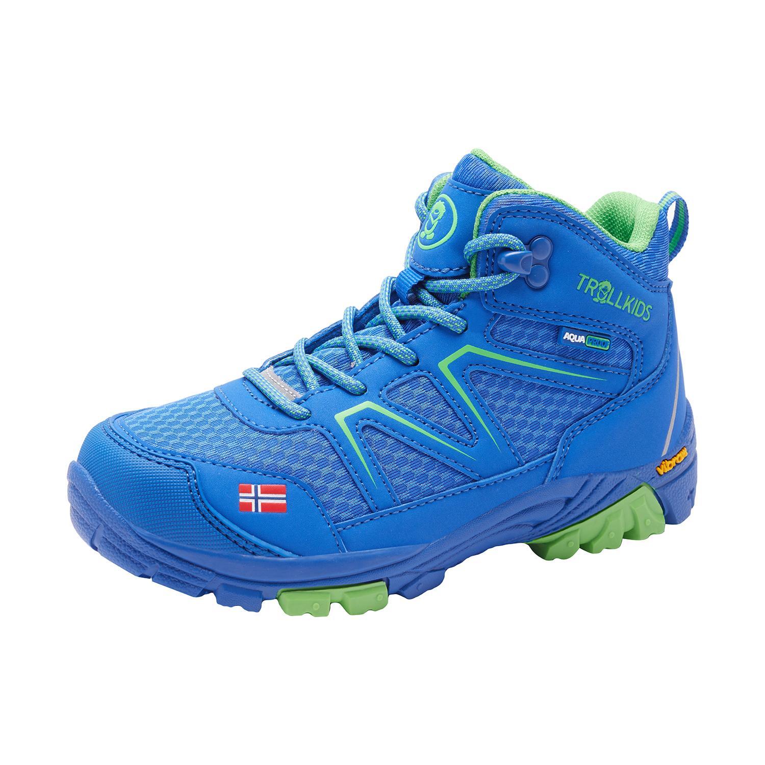 Ideal für lange Wandertouren, ausgedehnte Spaziergänge oder einfach zum Spielen und Toben: Der KIDS SKARVAN HIKER MID ist ein sportlicher knöchelhoher Wanderschuh, der dank der AQUAPROOF-Membran wasserdicht und damit auch bei Regen in seinem Element ist. Der knöchelhohe Schaft mit der klassischen Wanderschuh-Schnürung gewährleistet eine ideale Anpassung an den Fuß und die nötige Stabilität auch in unwegsamem Gelände. Für den Schutz des Fußes ist die Zehenpartie verstärkt. Die besonders hochwertige, abriebfeste Vibram-Sohle sorgt für sicheren Halt und hohen Laufkomfort. Auf der Rückseite hat der KIDS SKARVEN HIKER MID ein reflektierendes Element für bessere Sichtbarkeit. Gewicht: 630 g (Größe 31/32).