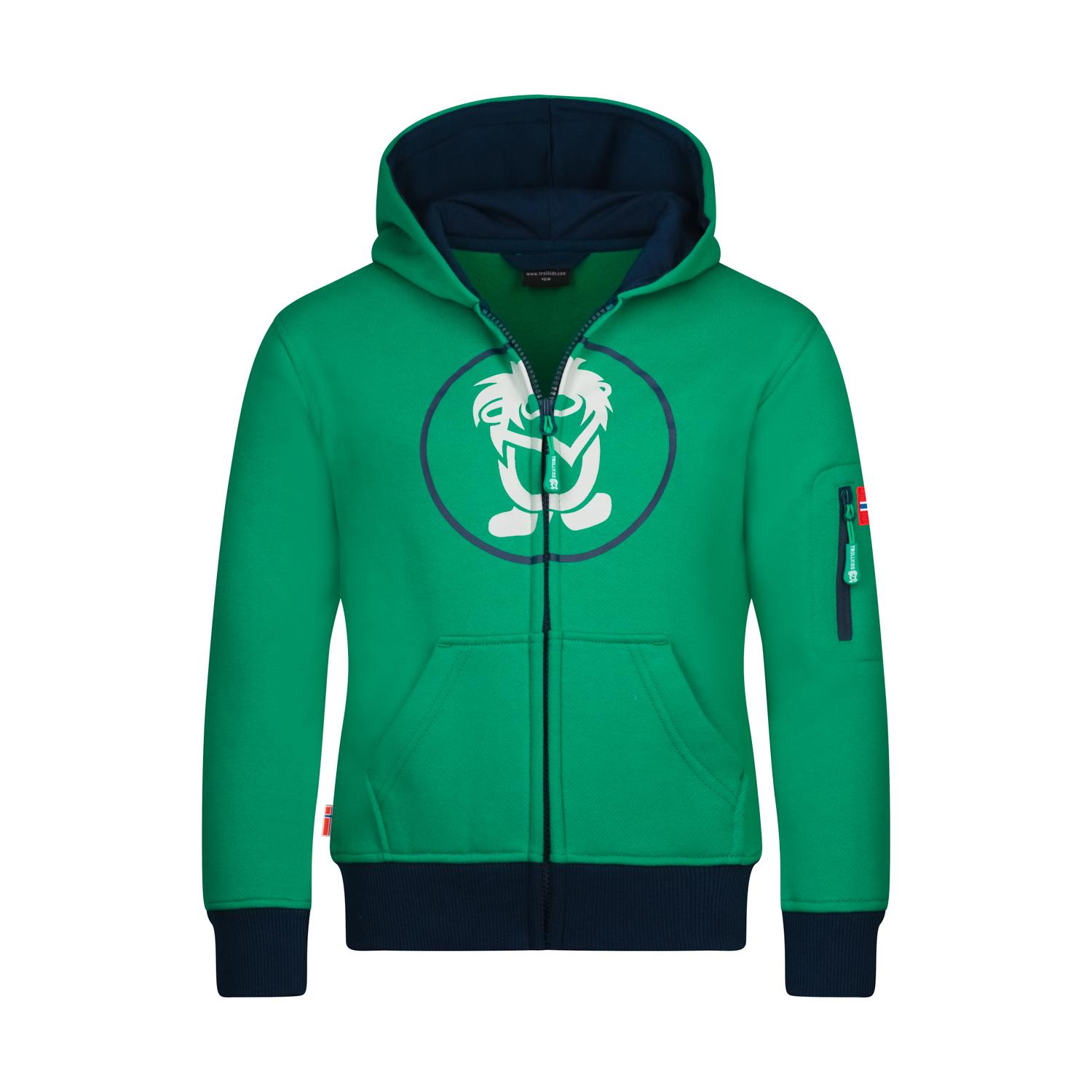 Der Allrounder schlechthin ist die KIDS SORTLAND JACKET aus weichem, pflegeleichtem Baumwoll-Polyester-Mischgewebe. Frontreißverschluss, Bündchen und Kapuzeninnenfutter sind farblich abgesetzt. Der Logoaufdruck auf der Vorderseite, die große Kängurutasche und die Ärmeltasche, mit farblich abgesetztem Reißverschluss, machen die KIDS SORTLAND JACKET zu einem lässigen Eyecatcher.