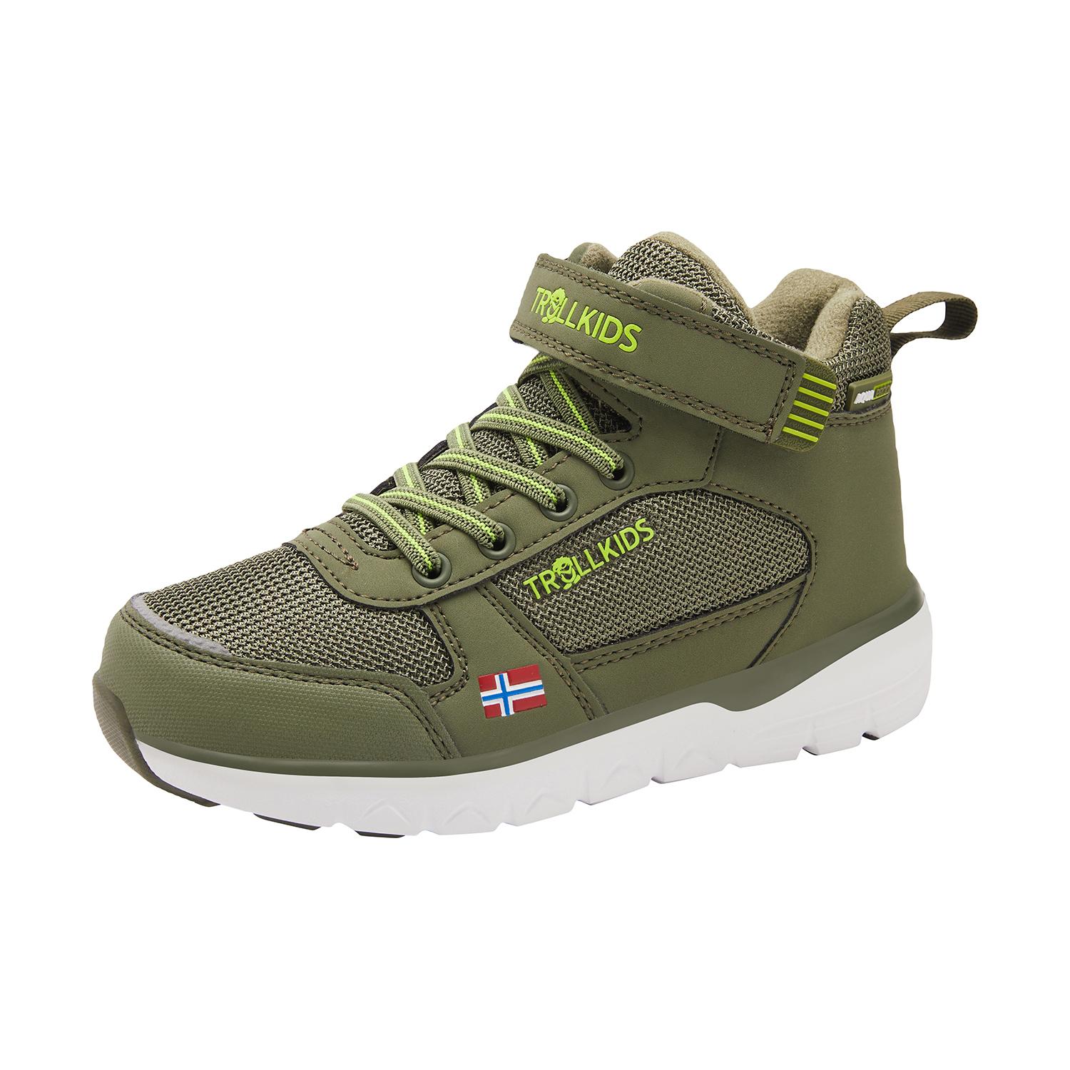 Street Style UND Wetterfestigkeit vereint der KIDS STAVANGER MID CUT WINTER: Der alltagstaugliche Schuh im urbanen Design ist dank der AQUAPROOF-Membran wasserdicht und atmungsaktiv. Die Kombination aus elastischer Schnürung und Klettriegelverschluss erlaubt ein blitzschnelles Anziehen und sieht zudem stylisch aus. Verstärkungen im Zehen- und Fersenbereich geben dem Schuh eine robuste und unkomplizierte Note. Auf der Rückseite sorgt ein dezentes reflektierendes Trollkids-Logo für Sichtbarkeit. Gewicht: 420 g (Größe 31/32). Material: Außenmaterial: 70 % Polyurethan, 30 % Mesh | Innenmaterial: Mesh (100 % Polyester), Einlegesohle: 100 % EVA | Sohle: EVA, Thermoplastisches Gummi.