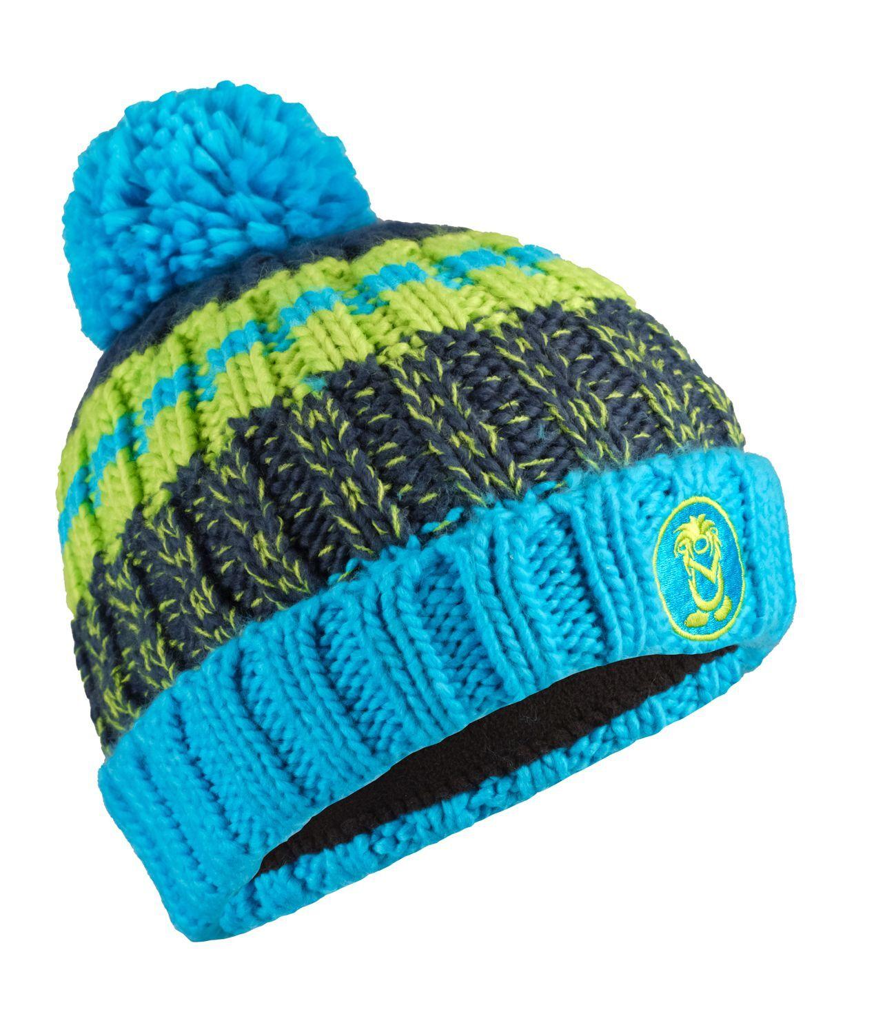 Zweifarbig gestrickte Mütze mit Bommel und großem Umschlag mit TROLLKIDS-Logo. Ein Fleece-Innenstirnband sorgt für zusätzlichen Tragekomfort.