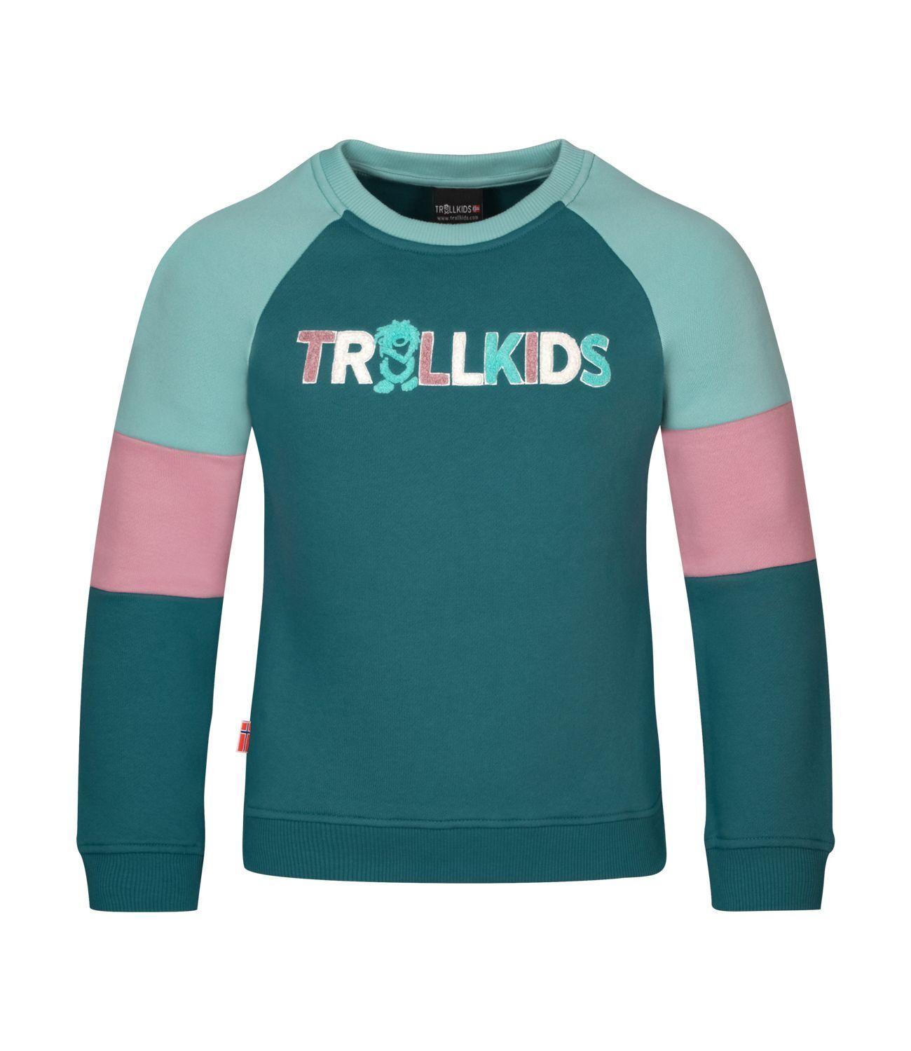 Der TROLLKIDS-Schriftzug in Hochfloor-Applikation und das dreifarbige Design machen das KIDS TROLLFJORD SWEATSHIRT sicherlich zum neuen Lieblingsteil. Weitere Vorteile gefällig? Bitteschön: innen weich angeraut, klassisch-gemütlicher Sweatshirt-Schnitt mit Strickbündchen und ein Mischgewebe aus 80 % Bio-Baumwolle und 20 % recyceltem Polyester. Gewicht: 260 g (Größe 128).