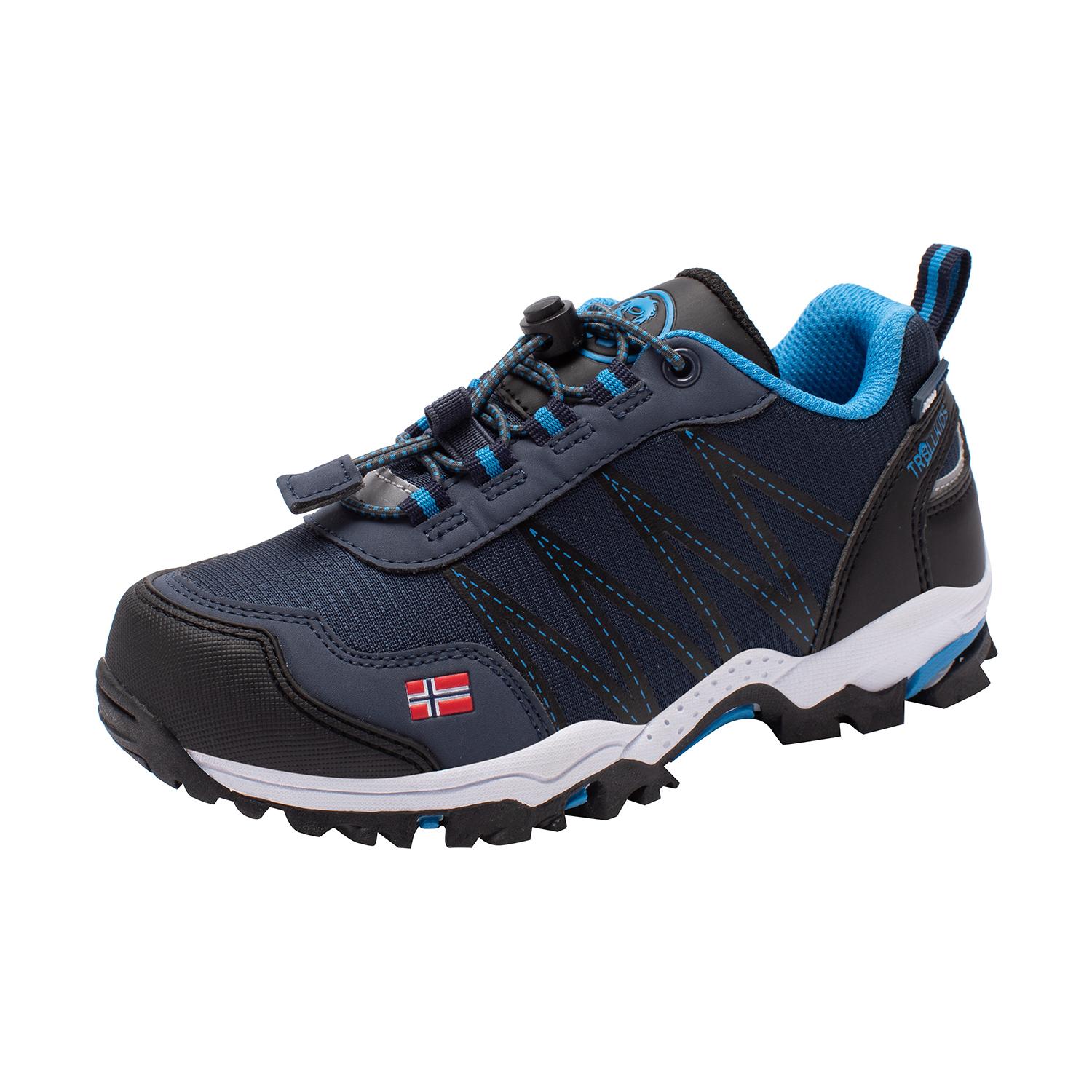 Wasserdichter atmungsaktiver Wanderschuh mit Schnellverschluss. Die drei Traveler und Outdoor-Aktivisten Jorn, Jeaneth und Tobias beschlossen auf einer gemeinsamen Trekking-Tour, die sie mit ihren Familien durch Norwegens Hochgebirge Jotunheimen führte, im Jahre 2008 das Outdoor-Label TROLLKIDS zu gründen. Grundidee der Marke TROLLKIDS ist es, jungen naturbegeisterten Familien ein kompromisslos robustes und vielseitiges Produkt an die Hand zu geben, das die Prinzipien Qualität, Funktion, Design und Bezahlbarkeit in Einklang bringt.Aus dieser Idee entstand ein Jahr um Jahr beliebteres und erfolgreicheres Kinder-Outdoor-Label, dessen Produkte in Europa entwickelt und regelmäßig in Skandinavien und den Alpen getestet und in Asien von Spezial-Nähereien gefertigt werden.