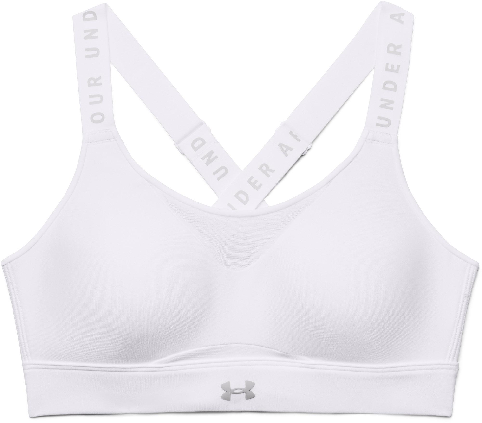 Sport-BH mit vorgeformten Cups und starkem Halt; elastisches Material mit feuchtigkeitsableitender, schnelltrocknender und kühlender Heatgear®-Technologie; Einsätze aus atmungsaktivem Mesh; weiches, schweißableitendes Unterbrustband mit Hakenverschluss für einfaches An- und Ausziehen; verstellbare, überkreuzte Träger mit Labelprint; Material 87% Polyester, 13% Elastan.