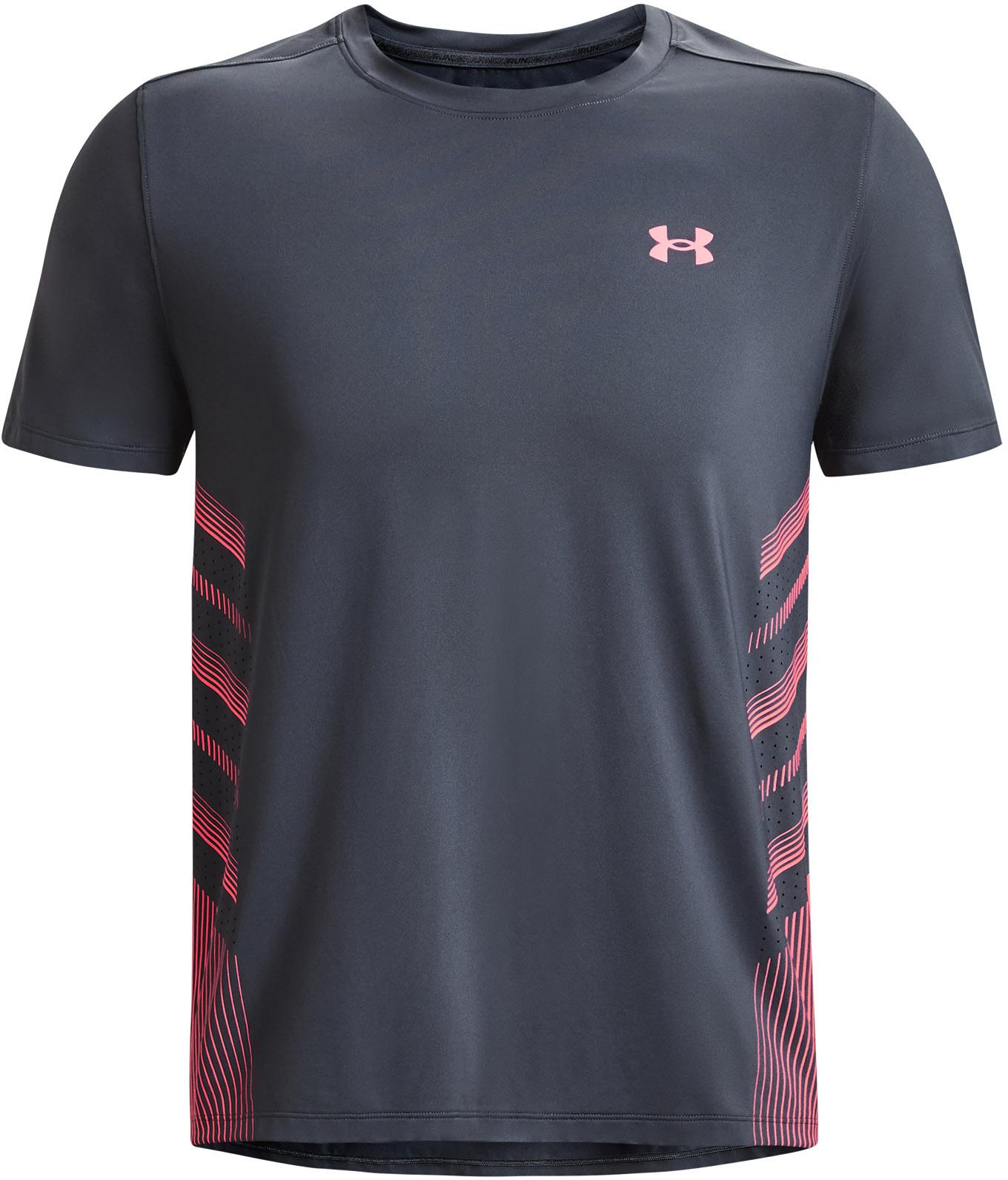 Locker geschnittenes Funktionsshirt; kühlendes Iso-Chill-Gewebe; schweißableitend; schnelltrocknend; Bewegungsfreiheit durch 4-Wege-Stretch-Technologie; Rundhalsausschnitt; kurzärmlig; Laserperforationen auf der Rückseite für maximale Atmungsaktivität; reflektierende Elemente; Logodetail auf der Brust; Material 90% Polyamid, 10% Polyester.