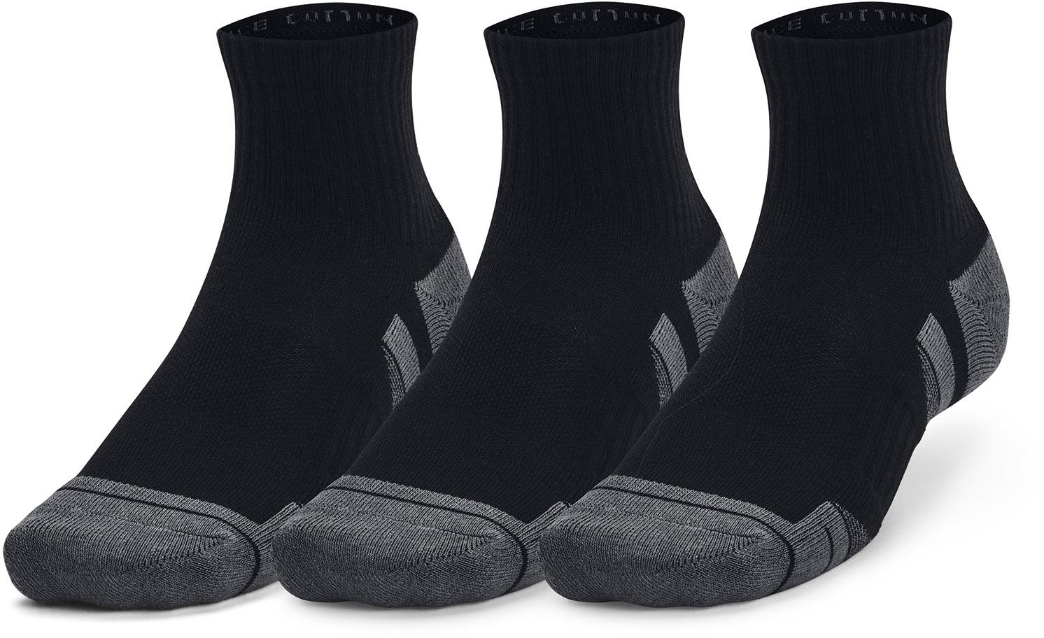 3er-Pack knöchelhohe Socken; aus schnelltrocknendem und feuchtigkeitsregulierendem Material für ein kühles, trockenes Tragegefühl; Einsätze aus Netzstoff sorgen für Atmungsaktivität; integrierte Mittelfußstütze; mittlere Dämpfung am gesamten Fuß; engere, sicher sitzende Passform; Material 64% Baumwolle, 33% Polyester, 3% Elastan.