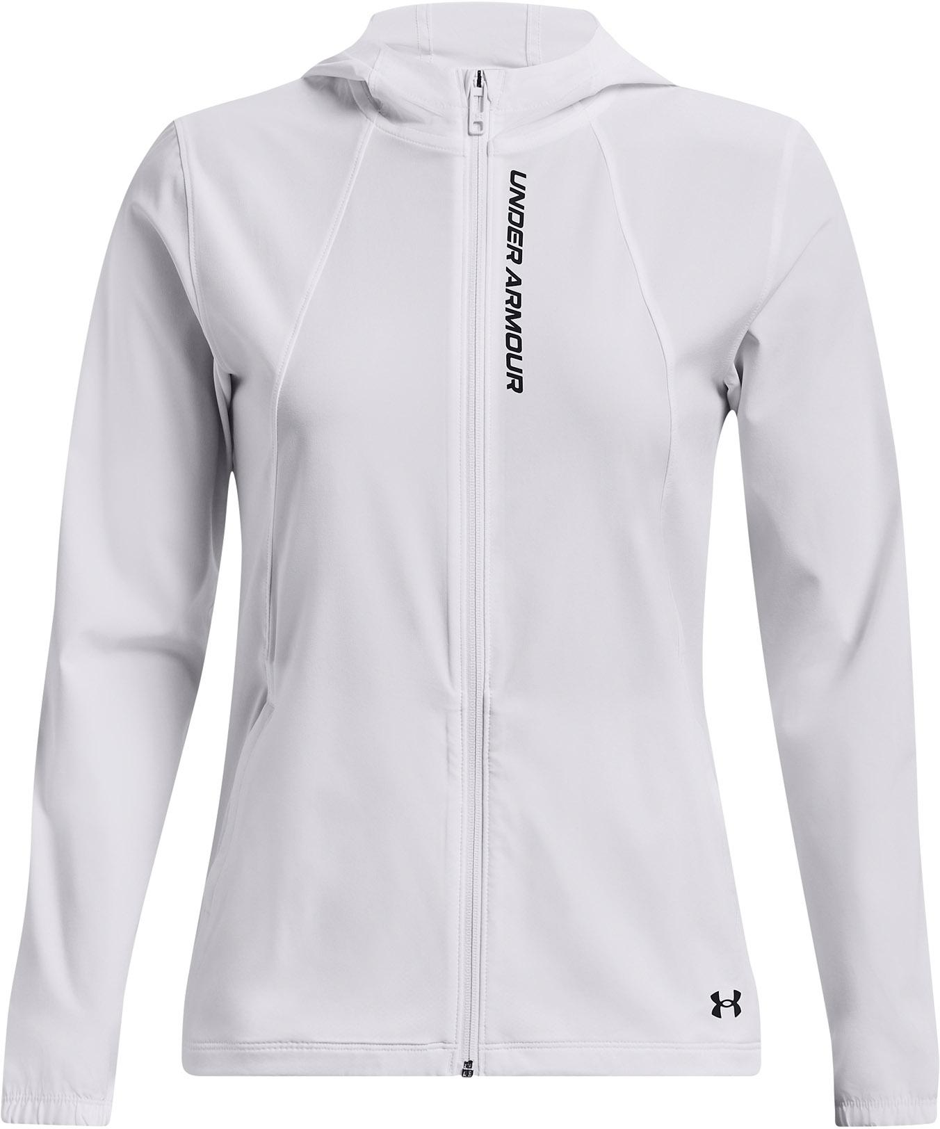 Funktionsjacke aus strapazierfähigem 4-Wege-Stretch-Gewebe; mit wasserabweisender und atmungsaktiver UA Storm-Technologie; feste Kapuze und Frontreißverschluss mit Kinnschutz; windabweisendes Design; Belüftungsschlitze an der Seite; 2 Seitentaschen mit Reißverschluss und 1 integrierten Handytasche; Labelprint und reflektierende Details; fluorfreie, wasserabweisende Beschichtung; Material 87% Polyester, 13% Elastan.