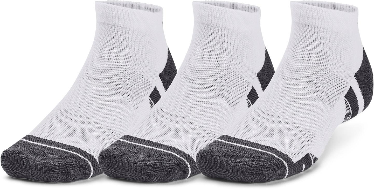 Praktischer 3er-Pack kurze Sportsocken, mit feuchtigkeitsableitender, schnelltrocknender und kühlender Heatgear®-Technologie; komfortable Fußpolster sorgen für angenehmen Tragekomfort; Material 100% Polyester.
