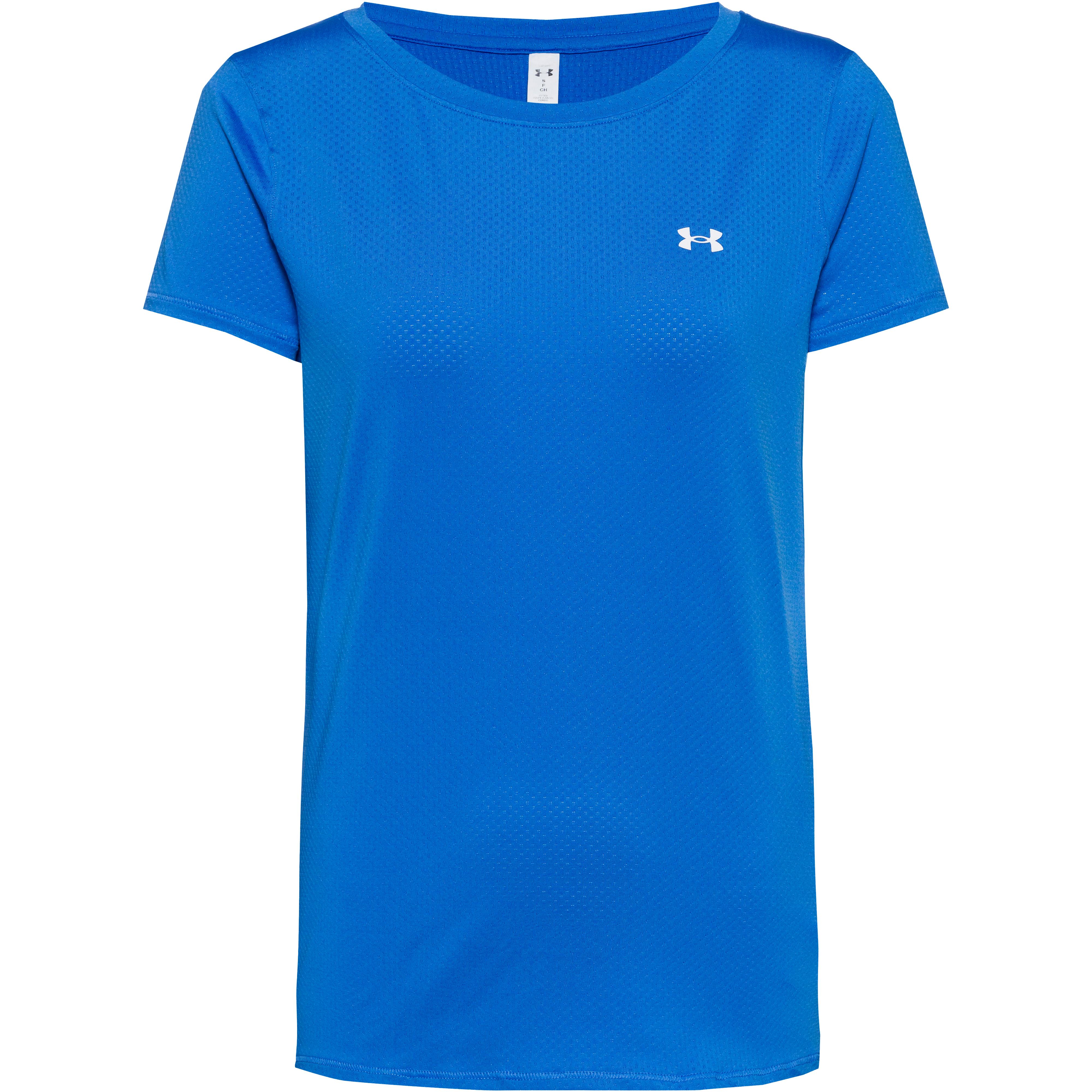 Kurzärmeliges Funktionsshirt mit feuchtigkeitsableitender, schnelltrocknender und kühlender HeatGear®-Technologie; flache, reibungsarme Nähte; Rundhalsausschnitt; Material 94% Polyester, 6% Elastan.