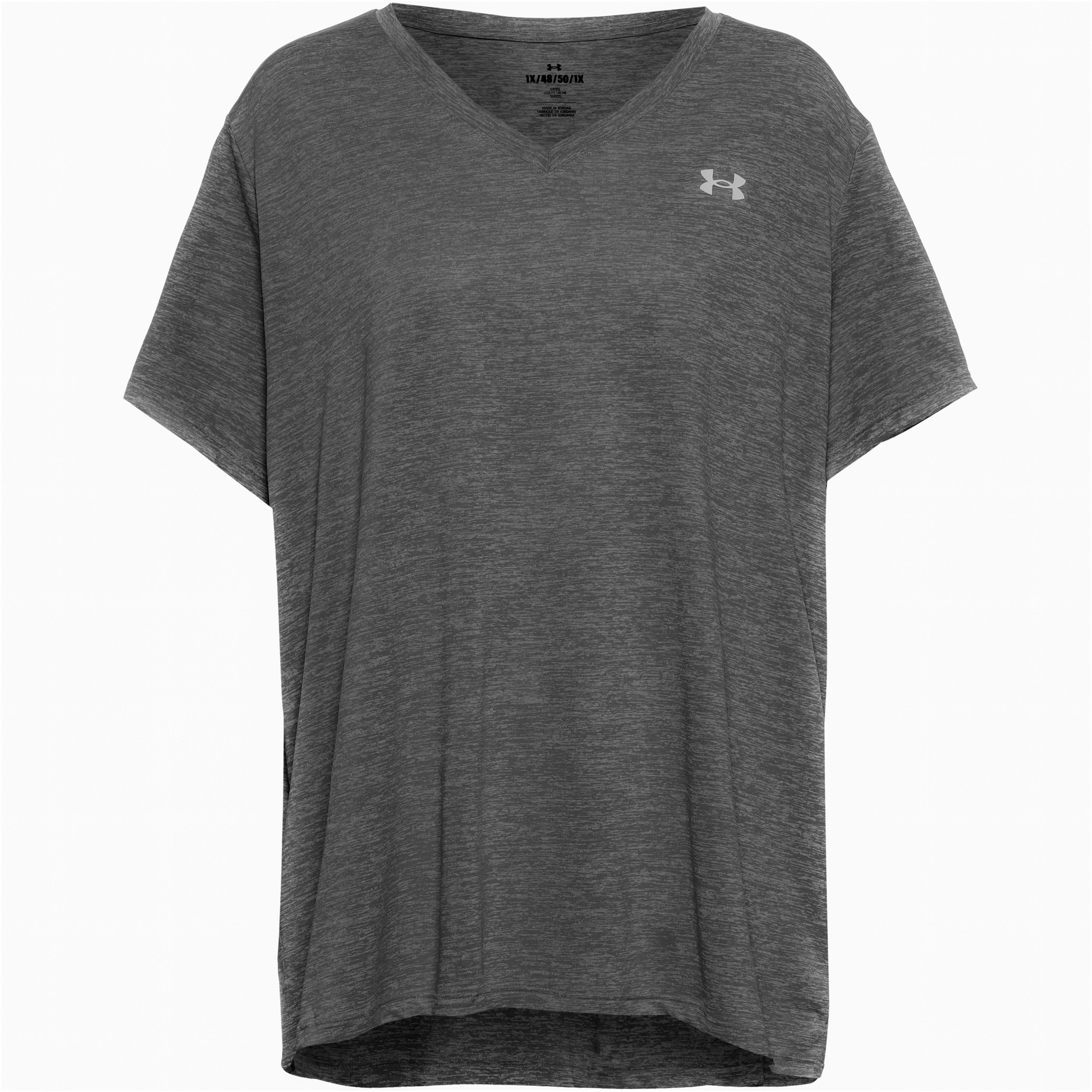 Meliertes, kurzärmeliges Funktionsshirt, Loose Fit Passform; V-Ausschnitt; Markendetail auf der Front; Material 100% Polyester.