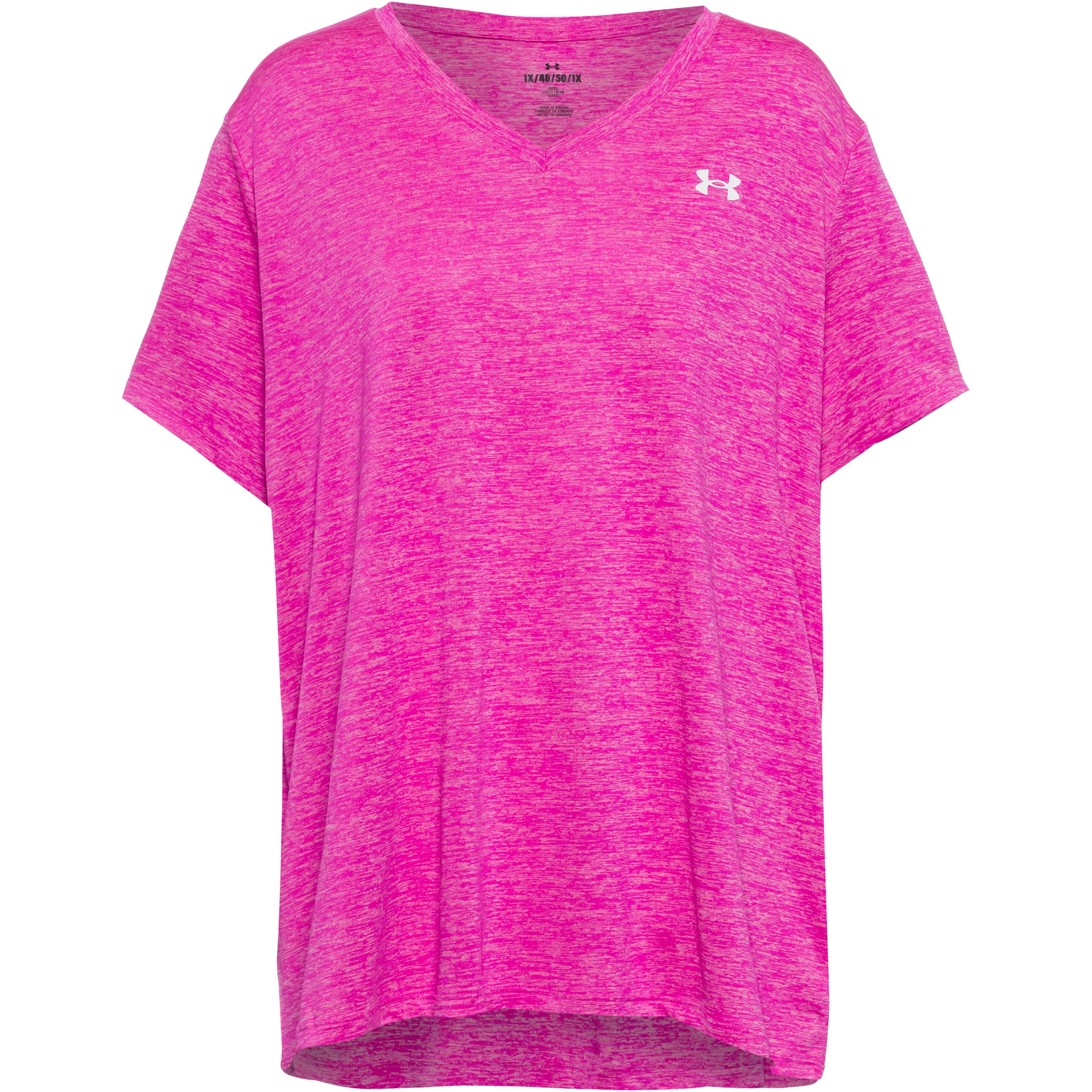 Meliertes, kurzärmeliges Funktionsshirt, Loose Fit Passform; V-Ausschnitt; Markendetail auf der Front; Material 100% Polyester.