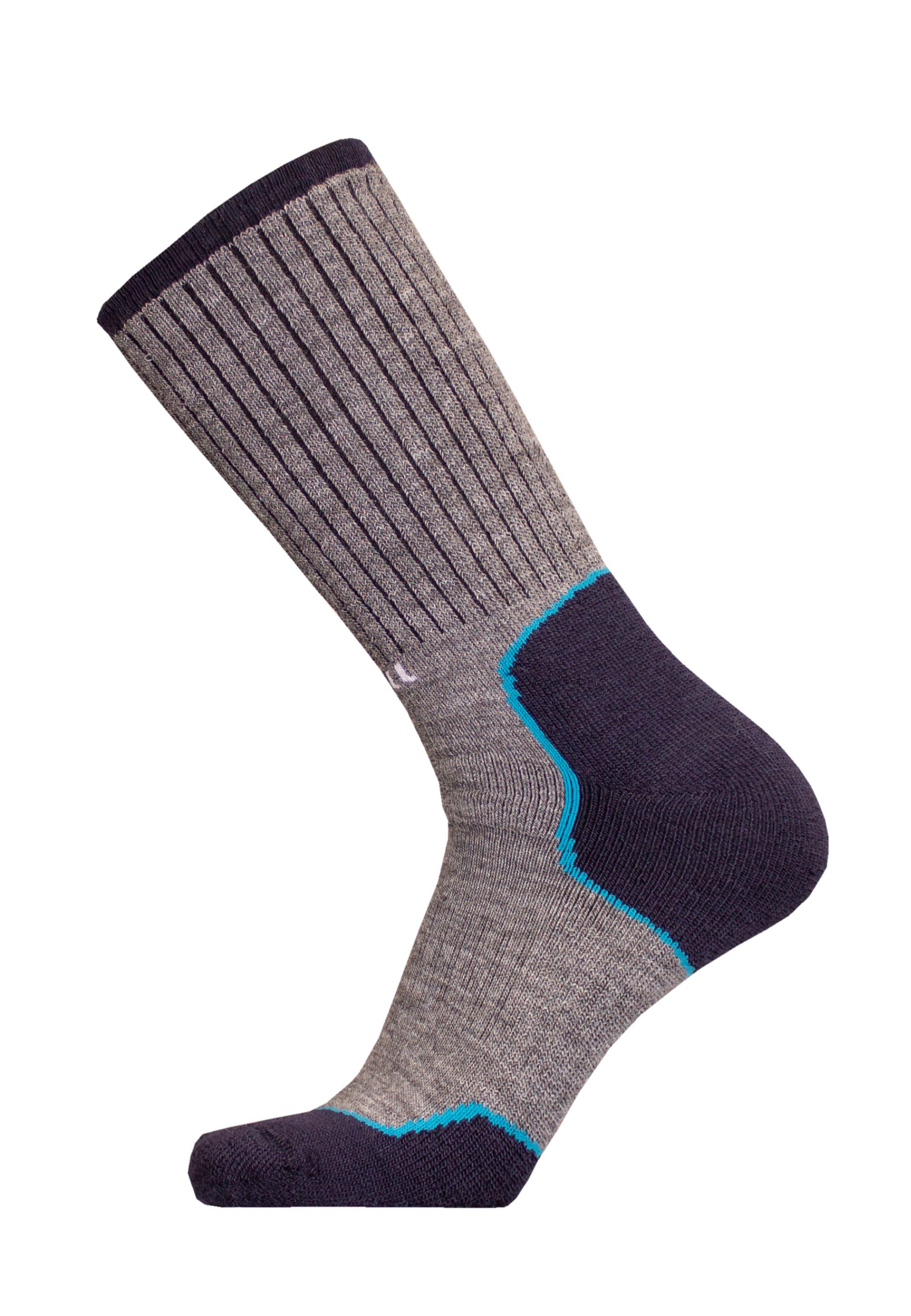 Die dicken Merino-Socken „Salla“ sind ideal für den Skilanglauf geeignet und passen wadenlang geschnitten perfekt in jeden Skischuh. Sie sind mit einer elastischen Frotteestruktur hergestellt. Dabei sorgen Merinowolle mit Polyacryl für angenehme Wärme und Feuchtigkeitsabsorption. Dies garantiert eine hohe Atmungsaktivität und Wärme. Der Schaft der funktionalen Socken besteht aus Frottee und ist mit einer speziellen elastischen Struktur gestrickt. So bleiben Ihre Füße warm, während die Weichheit für Komfort bei jeder Bewegung sorgt. Der Fußteil der Socken hat eine angepasste Ferse und eine nahtlose Spitze. Das verbessert den Halt im Mittelfußbereich und erhöht den Komfort, indem die Socke an Ort und Stelle bleibt und nicht knittert. Mit dem Wärmegrad 4 sind die Funktionssocken ideal für mittlere und kalte Bedingungen geeignet. Merino ist als Frottee an der Sohle, am Knöchel und am Schaft gestrickt. Dies erhöht die Weichheit und den Komfort im Schuh. Merino erhöht zudem auch die Atmungsaktivität.