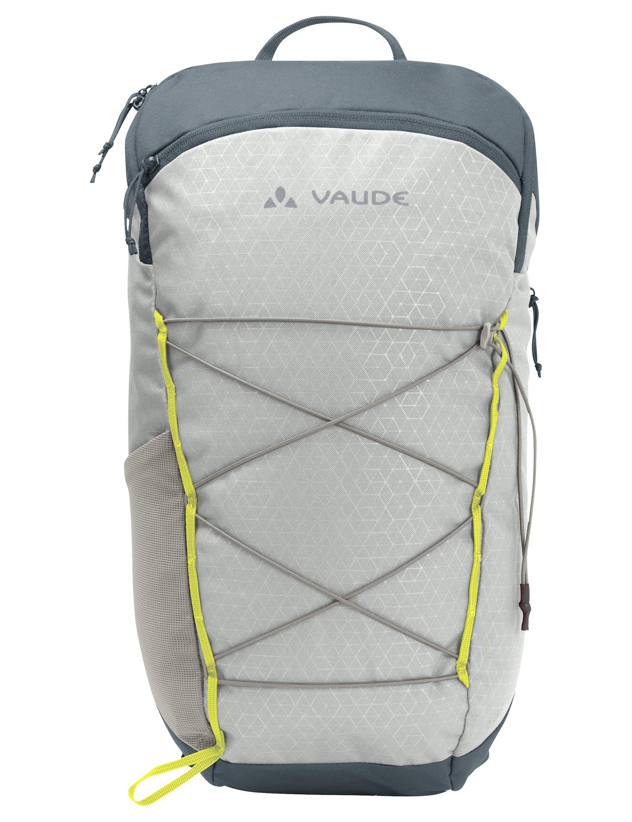 Gemacht für leichte Tageswanderungen ist der Agile 14 Wanderrucksack ein echter Allrounder und auch im Alltag oder bei Fahrradtouren ein treuer Begleiter. Das Vent Comfort Tragesystem mit ergonomisch geformten Schultergurten ist angenehm gepolstert, sorgt für einen stabilen Sitz nah am Rücken und eine gute Belüftung. Das Volumen von 14 Litern reicht aus, um von der Regenjacke über Snacks und Wasser bis zu Kleinteilen wie Geldbörse, Sonnenbrille &, Co. alles zu verstauen. Einen schnellen Zugriff (z.B. aufs Smartphone) erlaubt die seitliche Reißverschluss-Tasche des Wanderrucksacks. Im Alltagsgebrauch oder bei sehr leichter Zuladung lässt sich der Hüftgurt schnell abnehmen. Der elastische Kordelzug auf der Front dient als (Rad-)Helmhalterung oder vielseitige Befestigung für eine Jacke oder ein durchgeschwitztes Shirt. Das VAUDE Green Shape-Label steht für ein umweltfreundliches, funktionelles Produkt aus nachhaltigen und bluesign® zertifizierten Materialien.