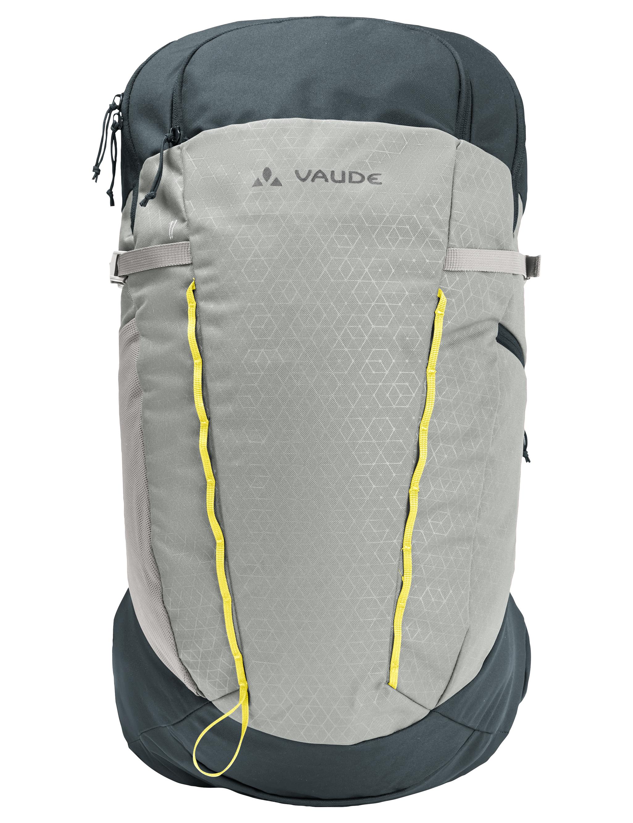 Eine große Stärke des Agile Air 26 l Wanderrucksacks zeigt sich an heißen Sommertagen: Das hinterlüftete Tragesystem Aeroflex 3D schafft einen nach drei Seiten offenen Raum zwischen Packsack und Rücken. So kann die Luft zu allen Seiten zirkulieren und der Wärmestau wird signifikant reduziert. Die Ausstattung lässt auf Tageswanderungen und im Alltag keine Wünsche offen: ein gepolstertes Fach für Sonnenbrille und Smartphone ist genauso an Bord wie eine elastische Netztasche an der Seite und eine Halterung für Trekkingstöcke. Mit 26 l Volumen bietet der Wanderrucksack jede Menge Platz für Regen- und Wechselkleidung, Snacks und Wasser sowie Kleinteile wie Geldbörse, GPS &, Co. An zwei Gurtbändern mit Schlaufen lässt sich weitere Ausrüstung befestigen. Die Ergoshape-Schultergurte sitzen bequem ohne einzuengen, während der Hüftgurt für eine stabile Lastübertragung sorgt. Das VAUDE Green Shape-Label steht für ein umweltfreundliches, funktionelles Produkt aus nachhaltigen und bluesign® zertifizierten Materialien.