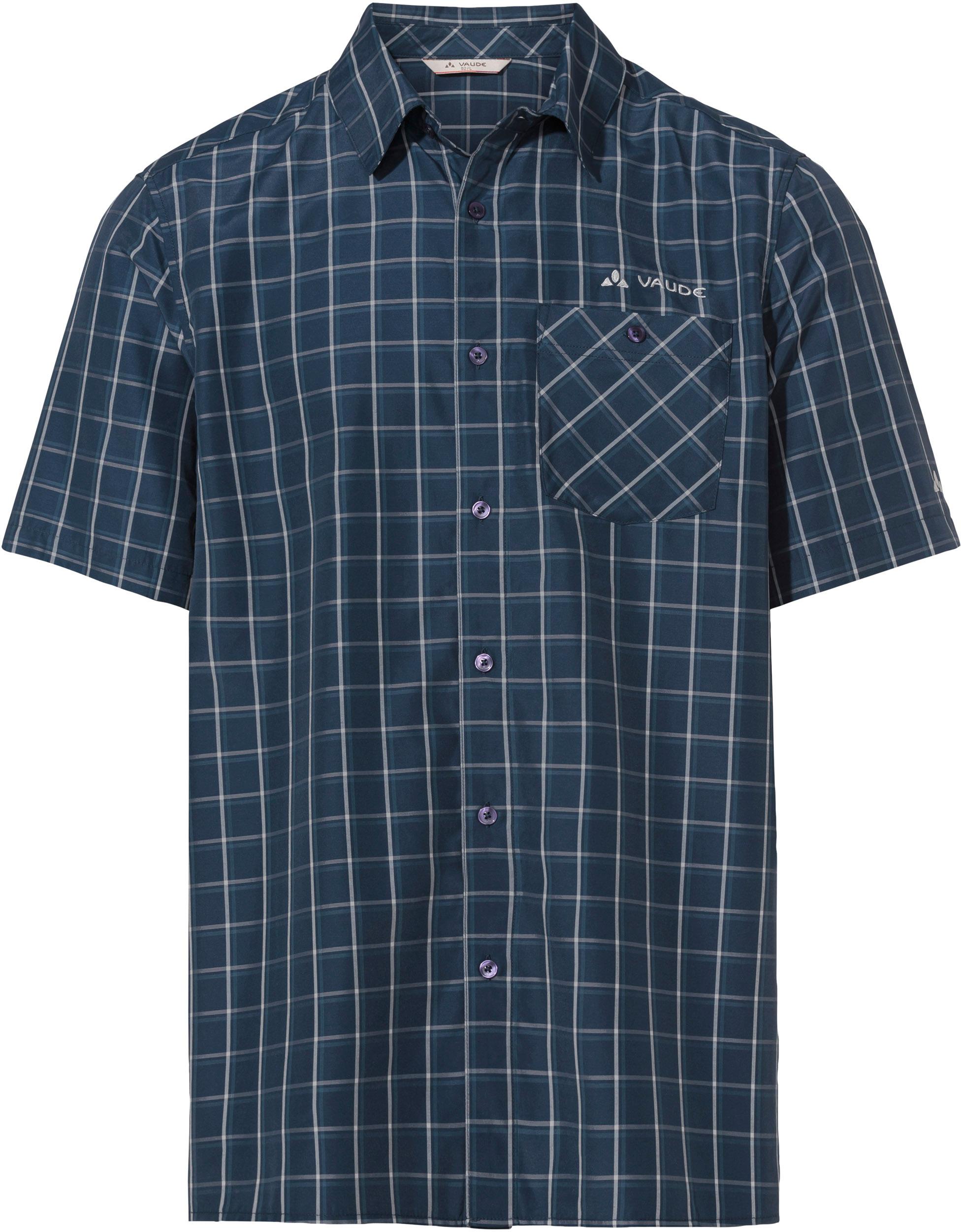 Kurzärmliges Funktionshemd mit Karo-Dessin; kühlend, geruchshemmend und schnelltrocknend; mit durchgehender Knopfleiste und 1 Brusttasche; überwiegend aus natürlichem Woodfiber hergestellt; Grüner Knopf; Green-Shape-Produkt; Material 54% Lyocell, 46% Polyester.