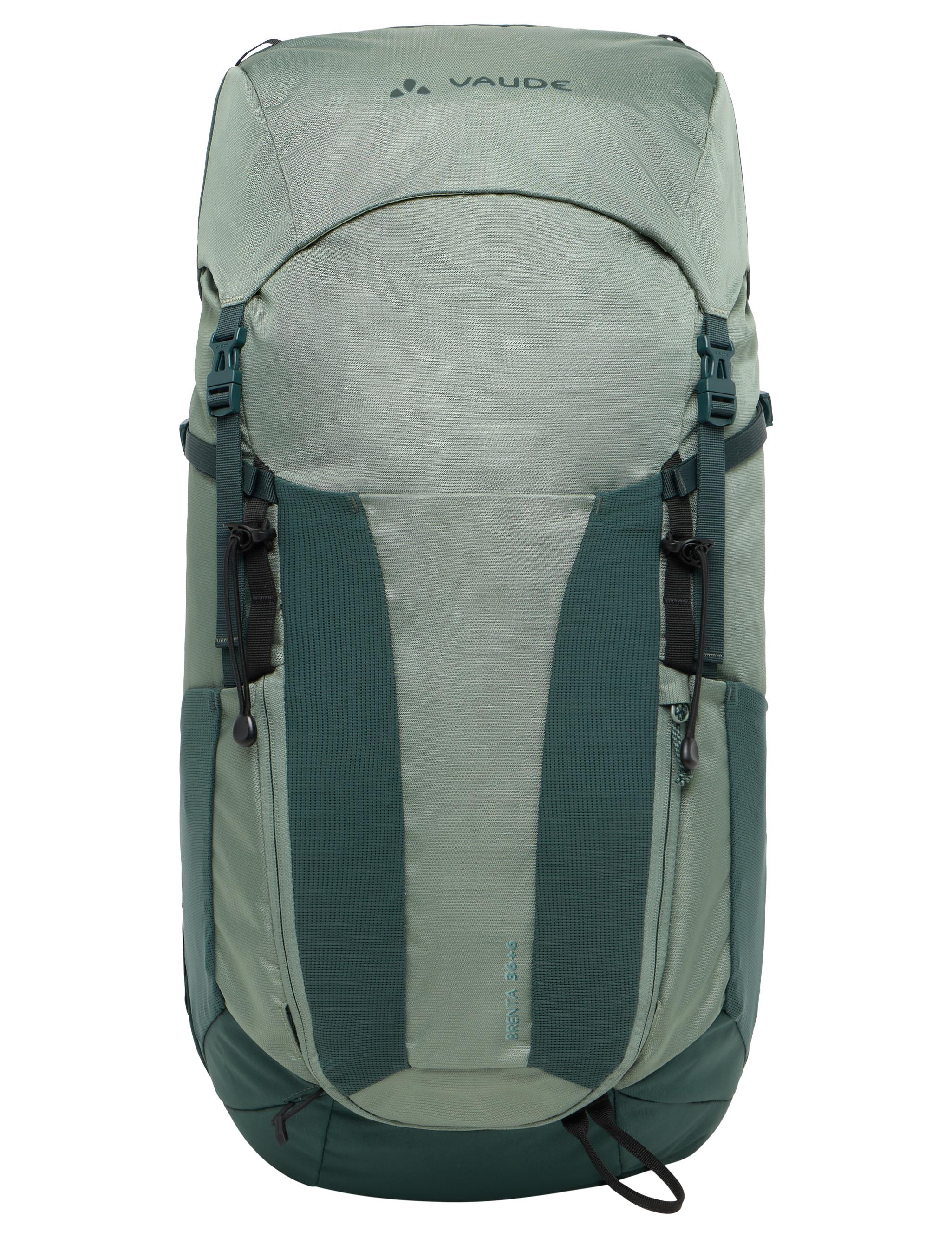 Range Extender: Der Brenta 36+6 Liter Wanderrucksack ist mit seinen knapp 1.500 Gramm leicht genug für ambitionierte Tagestouren, bietet aber gleichzeitig genug Volumen für mehrtägige Hüttenwanderungen. Entsprechend sind im Vergleich zu den kleineren Brenta-Modellen die Ergoshape-Schultergurte etwas dicker gepolstert. Außerdem ist der Hüftgurt auf beiden Seiten mit einer Reißverschluss-Tasche ausgestattet und es gibt zwei Befestigungspunkte für Trekkingstöcke oder Eisgeräte. Der Stauraum kann über den höhenverstellbaren Deckel um sechs Liter erweitert werden. Cleveres Detail: Die Schnalle der Deckelkompression lässt sich ausfädeln und als Ersatz für eine defekte Steckschnalle an anderer Stelle verwenden. Ansonsten überzeugt auch der Brenta 36+6 Liter Wanderrucksack mit dem hervorragend belüfteten Aeroflex 3D Netzrücken, dessen stabiler Rahmen gleichzeitig für einen sicheren Halt in jeder Tragesituation sorgt. Über den Frontzugriff lässt sich unten liegende Ausrüstung schnell erreichen, die seitlichen Netzfächer lassen sich dank zweifacher Öffnung erreichen, ohne den Rucksack absetzen zu müssen. Viele weitere Funktionen wie die Stretchtasche auf der Front, das Wertsachenfach im Deckel, die integrierte Regenhülle oder der Brustgurt mit Trinkschlauchfixierung runden die Ausstattung dieses Wanderrucksacks ab. Außerdem ist das Außenmaterial des Brenta 36+6 mit Eco Finish PFC-frei wasser- und schmutzabweisend ausgerüstet. Das VAUDE Green Shape-Label steht für ein umweltfreundliches, funktionelles Produkt aus nachhaltigen Materialien. Als Mitglied mit Leader Status bei der unabhängigen Organisation Fair Wear engagiert sich VAUDE für faire Arbeitsbedingungen und faire Löhne.
