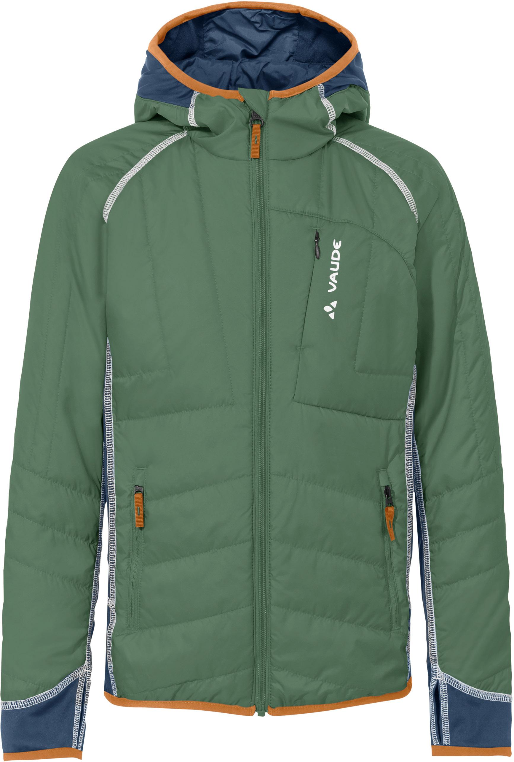 Hochfunktionale Skitourenjacke für Kinder mit Powerstretch-Einsätzen; schmaler, sportiver Schnitt; feste Kapuze; Frontreißverschluss mit Kinnschutz; 1 Brusttasche und 2 Fronttaschen mit Reißverschluss; Armbündchen mit Daumenschlaufe; leicht verlängerte Rückseite; atmungsaktive, umweltfreundliche Primaloft® Black Eco Insulation; mit dauerhaft wasserabweisendem, ohne PFC hergestelltem Eco Finish; bluesign® product; Grüner Knopf; Green-Shape-Produkt; Material I 100% Polyester (recycelt), Material II 89% Polyester (recycelt), 11% Elastan, Material III100% Polyester (recycelt).