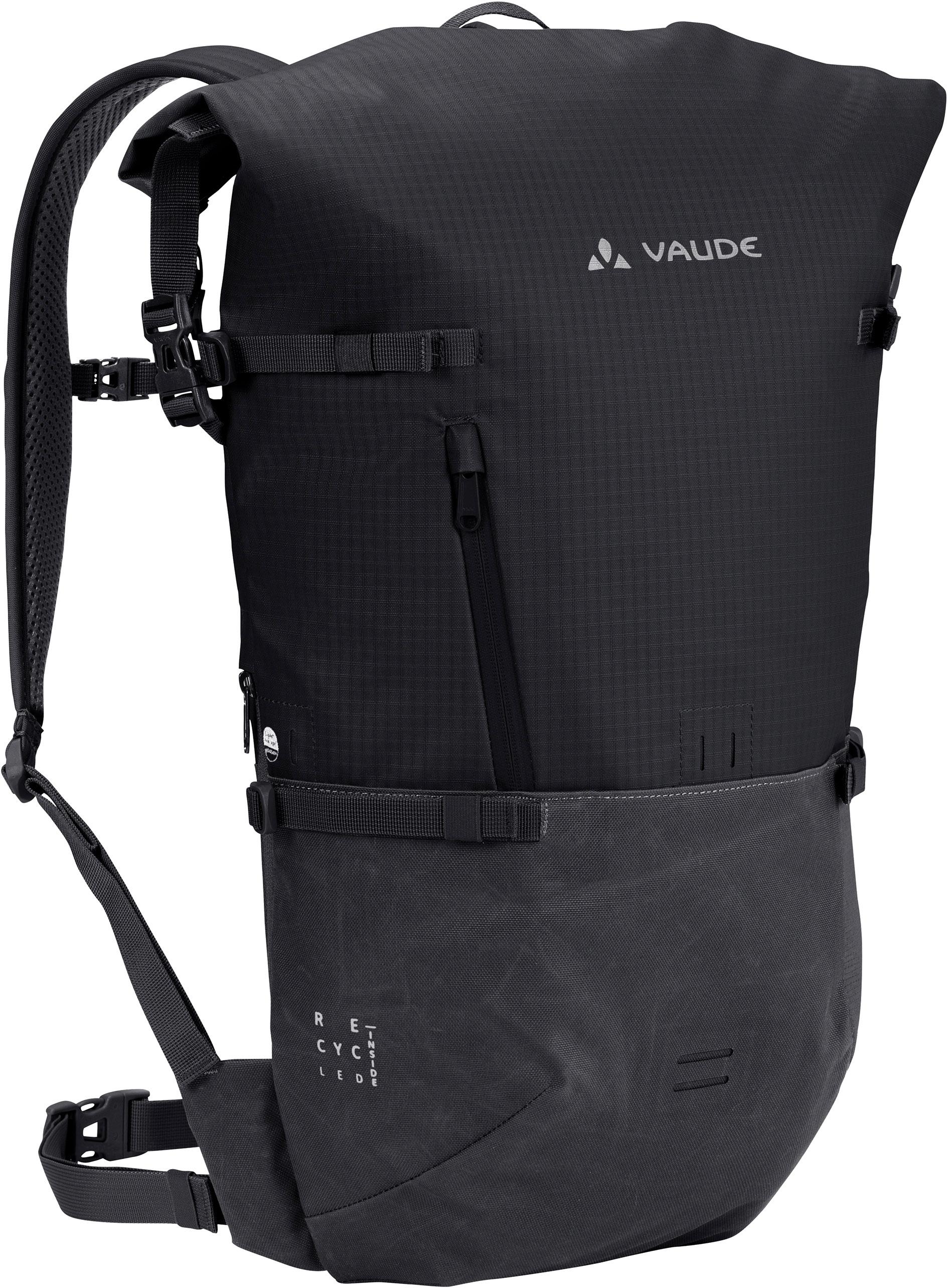 Funktionaler, mittelgroßer Daypack für den modernen Stadtalltag; hochwertiges Polyestergarn aus recycelten PET-Flaschen; wasser- und schmutzabweisend dank Eco Finish; gepolsterter Kontaktrücken mit großem Vent-Tex Ventilationskanal; integrierte Rückenverstärkung für mehr Packstabilität; gepolstertes 13,3'' Laptopfach, zugänglich von außen und innen; 1 Fronttasche mit Reißverschluss; 1 Reißverschlussfach auf der Rückseite, z.B. für das Smartphone; 1 Netz-Seitentasche; höhenvariables Hauptfach mit Wickelverschluss; wasserdichter Reißverschluss; ausgefeilte Innenorganisation für Schreibutensilien, Schlüssel etc.; Kompressionsriemen; ergonomische Schultergurte; Brust- und Hüftgurt; Tragegriff; Blinklichthalter; kann optional mit dem Light Me Up-Kit für eine aktive Beleuchtung bei Dunkelheit ausgestattet werden (nicht im Lieferumfang enthalten); ohne PFC hergestellt; zertifiziert durch die Labels Grüner Knopf, Green Shape, myclimate neutral und Fair Wear Foundation; Volumen: 23 l; Maße (H/B/T): ca. 53 x 31 x 18 cm; Gewicht: ca. 780 g.