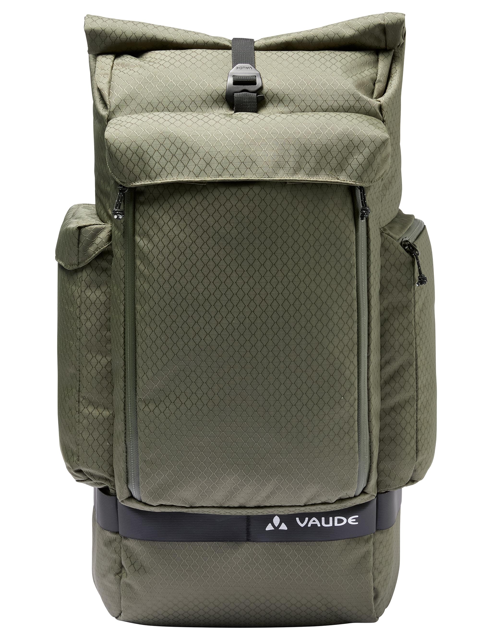 Vielsietig einsetzbarer Fahrrad Rucksack im Messenger Style für Commuting, Freizeit, Sport und Reise. Der Cyclist Pack mit Rolltop-Verschluss lässt keine Wünsche an einen Day by Day Rucksack offen. Durch die Vielzahl an Taschen wird perfekte Organisation möglich: Das geräumige Hauptfach nimmt mit 27 l alle Dinge des Alltags auf. Auf das große Laptopfach für 15,6" Geräte kann über einen Reißverschluss separat zugegriffen werden. Auf der Front findet sich ein zusätzliches Tabletfach mit weiteren Organizerfächern. 2 stabile, aufgesetzte Seitentaschen fassen Trinkflaschen oder auch das Feierabendbier. Bei geöffnetem Rollverschluss können selbst größere Einkäufe dank des komfortablen Rückensystems bequem transportiert werden. Die integrierte Regenhülle schützt den multifunktionalen Fahrradrucksack bei nassem Wetter. Ein unauffällig ins Design integriertes, reflektierendes Webband im unteren Drittel des Rucksackes sorgt für gute Sichtbarkeit in der Dunkelheit. Dieses Produkt ist mit Eco Finish umweltfreundlich wasserabweisend ohne Fluorcarbone (PFC) hergestellt. Das VAUDE Green Shape-Label steht für ein umweltfreundliches, funktionelles Produkt aus nachhaltigen und zertifizierten Materialien.