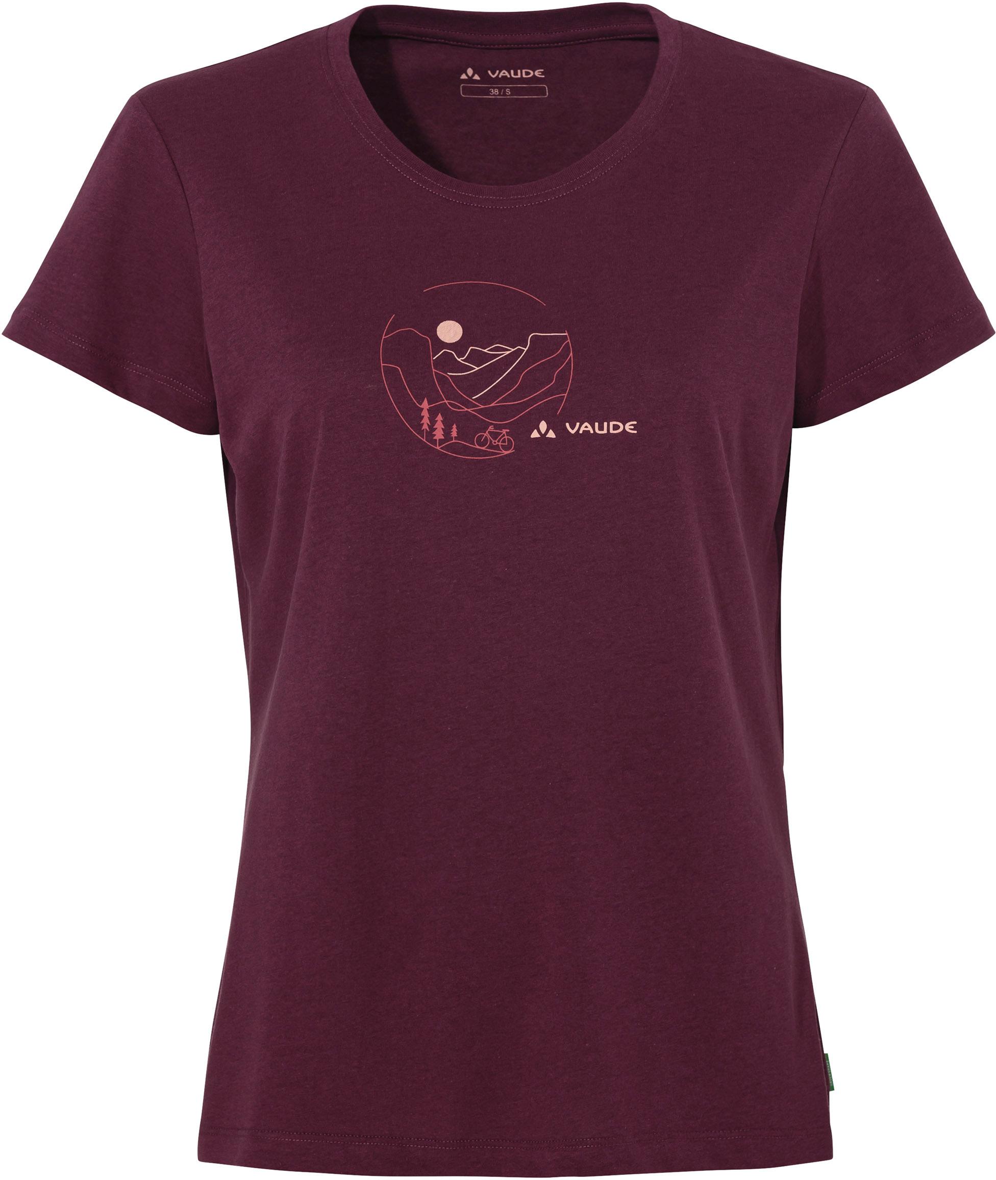 Nachhaltiger als das Women's Cyclist T-Shirt V geht es kaum! Dieses T-Shirt wird zu 70 % aus Bio-Baumwolle und zu 30 % aus recyceltem Polyester hergestellt, das aus alten PET-Flaschen gewonnen wird. Dieser Materialmix sorgt für einen tollen Tragekomfort und volle Funktion beim Radfahren. Somit ist es das perfekte Shirt für alle, die das Radfahren lieben und gleichzeitig umweltfreundliche Kleidung tragen wollen - das Shirt ist nach dem Global Organic Textile Standard (GOTS) zertifiziert. Mit Rundhalsausschnitt, kurzen Ärmeln und dezentem Print auf der Vorderseite des Shirts. Das VAUDE Green Shape-Label steht für ein umweltfreundliches, funktionelles Produkt aus nachhaltigen Materialien.