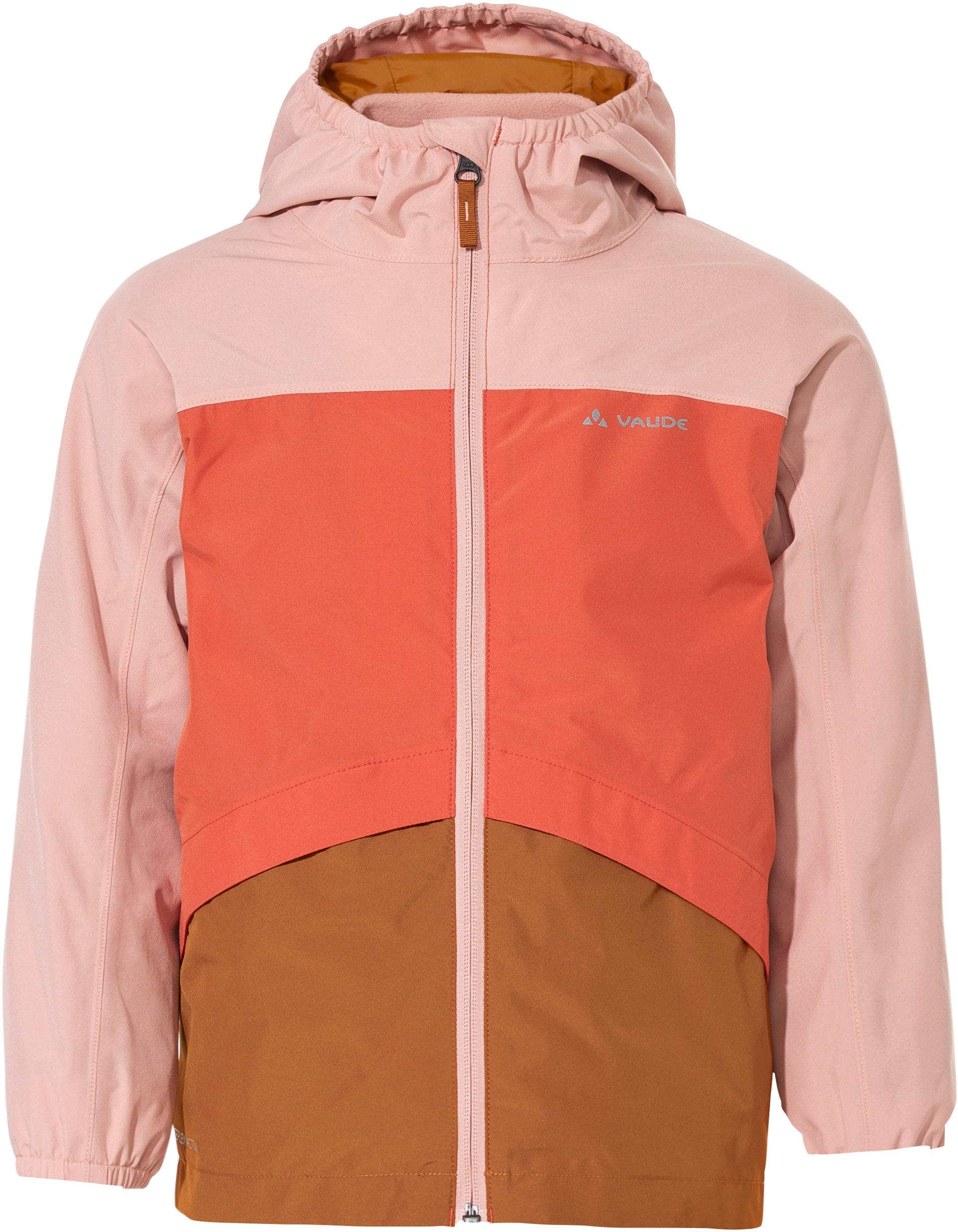 Der vielseitige Wetterschutz für das ganze Jahr. Mit der praktischen Doppeljacke kann eine große Bandbreite an Anwendungen, Wetter und Temperaturen abgedeckt werden. Als Regenschutz dient die wasserdichte Außenjacke, die bei milderen Temperaturen auch alleine getragen werden kann. Puristisch designed, aber sinnvoll ausgestattet mit einer Eingrifftasche, z. B. für Taschentücher und einem reflektierenden Logo. Die Innenjacke besteht aus einem pflegeleichten Fleece. Fleecejacken sind an sich bereits schon universelle Teile, in der Kombination mit schützenden Außenjacken jedoch absolute Multitalente für Alltag, Waldkindergarten und Freizeit. Die funktionelle VAUDE Kinderbekleidung zeichnet sich durch hochwertige Materialien, kindgerechte Passformen und Farben sowie eine umweltfreundliche Herstellung aus. Wir entwickeln durchdachte Kinder-Outdoorbekleidung, die sich durch ihre Langlebigkeit auch von Kind zu Kind weitervererben lässt. Das VAUDE Green Shape-Label steht für ein umweltfreundliches, funktionelles Produkt aus nachhaltigen Materialien.