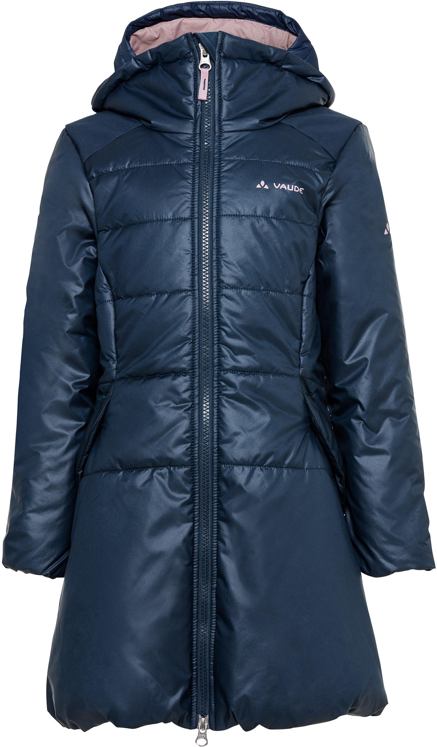 Funktionsmantel für Kinder; der leicht taillierte Mantel schützt mit warmen, weichem Material zuverlässig; der Hohe Kragen und die Kapuze bieten außerdem Wärme und Schutz; zwei Eingrifftaschen auf der Vorderseite, Zwei-Wege-Reißverschluss auf der Vorderseite; Markendetail; Material 100% Polyester.