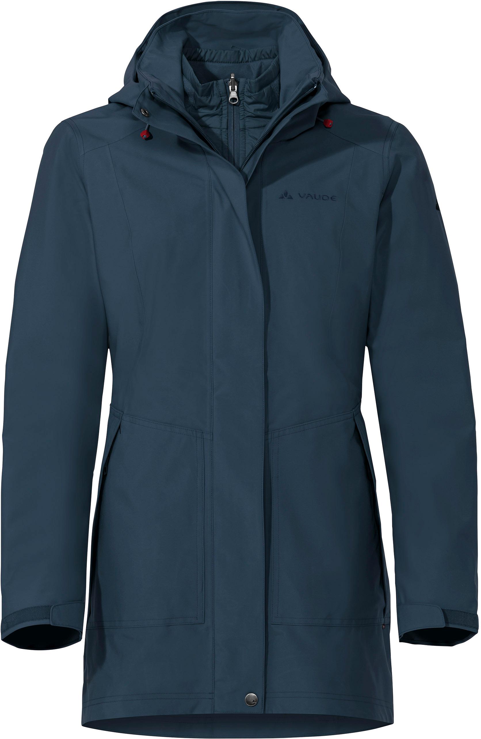 Vielseitiger 3in1-Parka für Wandern und Alltag; einklettbare Hybrid-Innenjacke mit Reißverschluss und wattierter Vorderseite; Außenjacke aus 2-lagigem Material mit wind- und wasserdichter Ceplex active Membran; atmungsaktiv; abnehmbare Kapuze mit Kordelzug; Frontreißverschluss und Windblende; vorgeformte Ärmel; durch Klettriegel verstellbare Ärmelabschlüsse; 2 verdeckte Reißverschlusstaschen; 1 Innentasche mit Reißverschluss; Regular Fit; mit dauerhaft wasserabweisendem, ohne PFC hergestelltem Eco Finish; Grüner Knopf- und Green Shape-Produkt; aus recycelten Materialien hergestellt; zertifiziert nach bluesign® Standard; Material 100% Polyester (recycelt), Material II 100% Polyurethan.