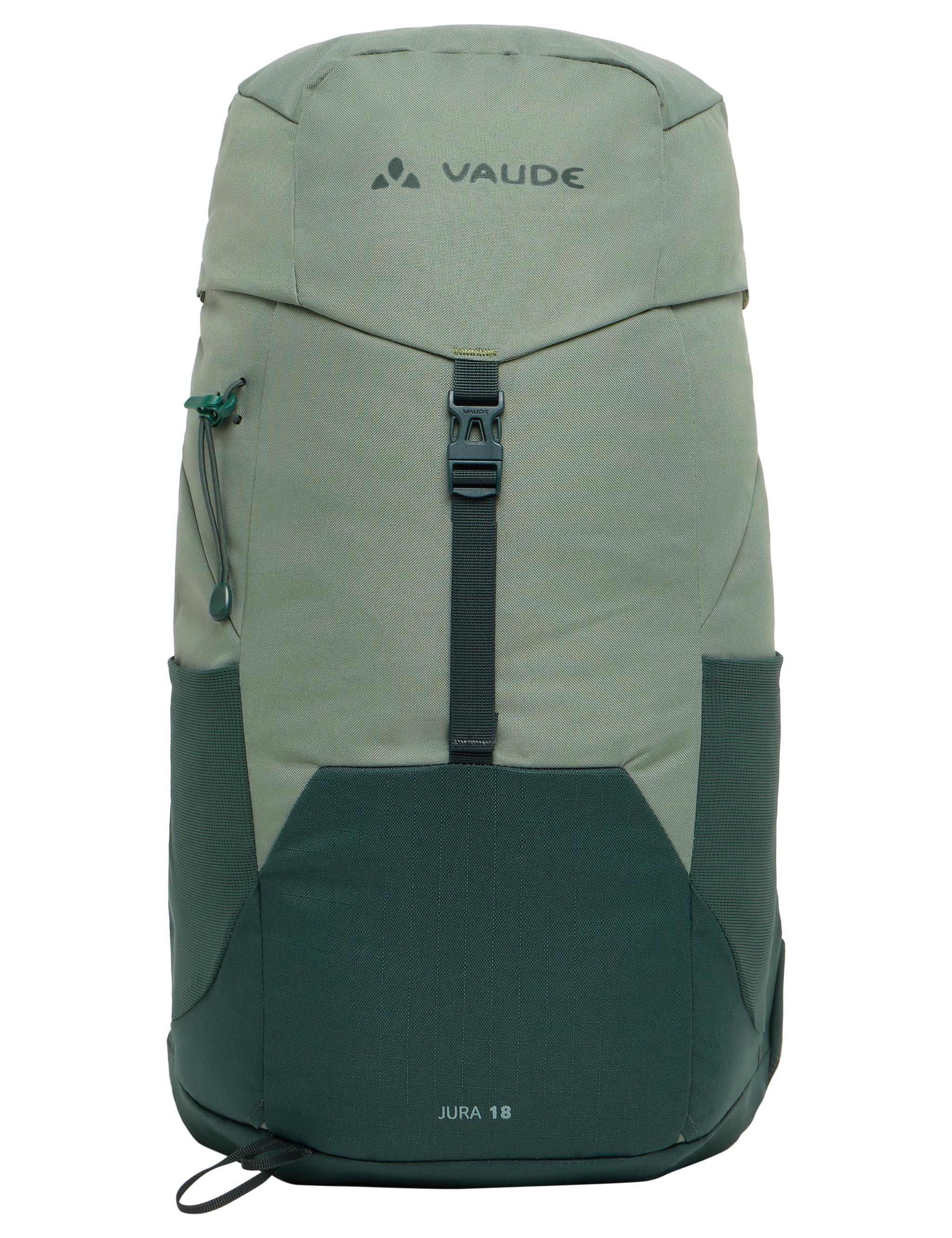 So geht Daypack! Der Jura 18 ist seit vielen Jahren einer unserer bewährten Wanderrucksäcke. Mit seinen 18 Litern Volumen bietet er ausreichend Stauraum für kürzere Touren. Dabei sorgen praktische Taschen für Ordnung, eine Stockhalterung und eine integrierte Regenhülle sind auch an Bord. Zusätzlich ist das Außenmaterial des Jura 18 Liter Wanderrucksacks mit Eco Finish PFC-frei wasser- und schmutzabweisend ausgerüstet. An heißen Tagen garantiert der hinterlüftete Netzrücken eine maximale Luftzirkulation und Stabilität in jeder Tragesituation. Ergonomische Schultergurte gewähren eine uneingeschränkte Bewegungsfreiheit, der Brustgurt ist mit einer Fixierung für den Trinkschlauch ausgestattet. Seine aufgeräumte und schlichte Optik machen den Wanderrucksack zudem auch komplett alltagstauglich. Das VAUDE Green Shape-Label steht für ein umweltfreundliches, funktionelles Produkt aus nachhaltigen Materialien. Als Mitglied mit Leader Status bei der unabhängigen Organisation Fair Wear engagiert sich VAUDE für faire Arbeitsbedingungen und faire Löhne.