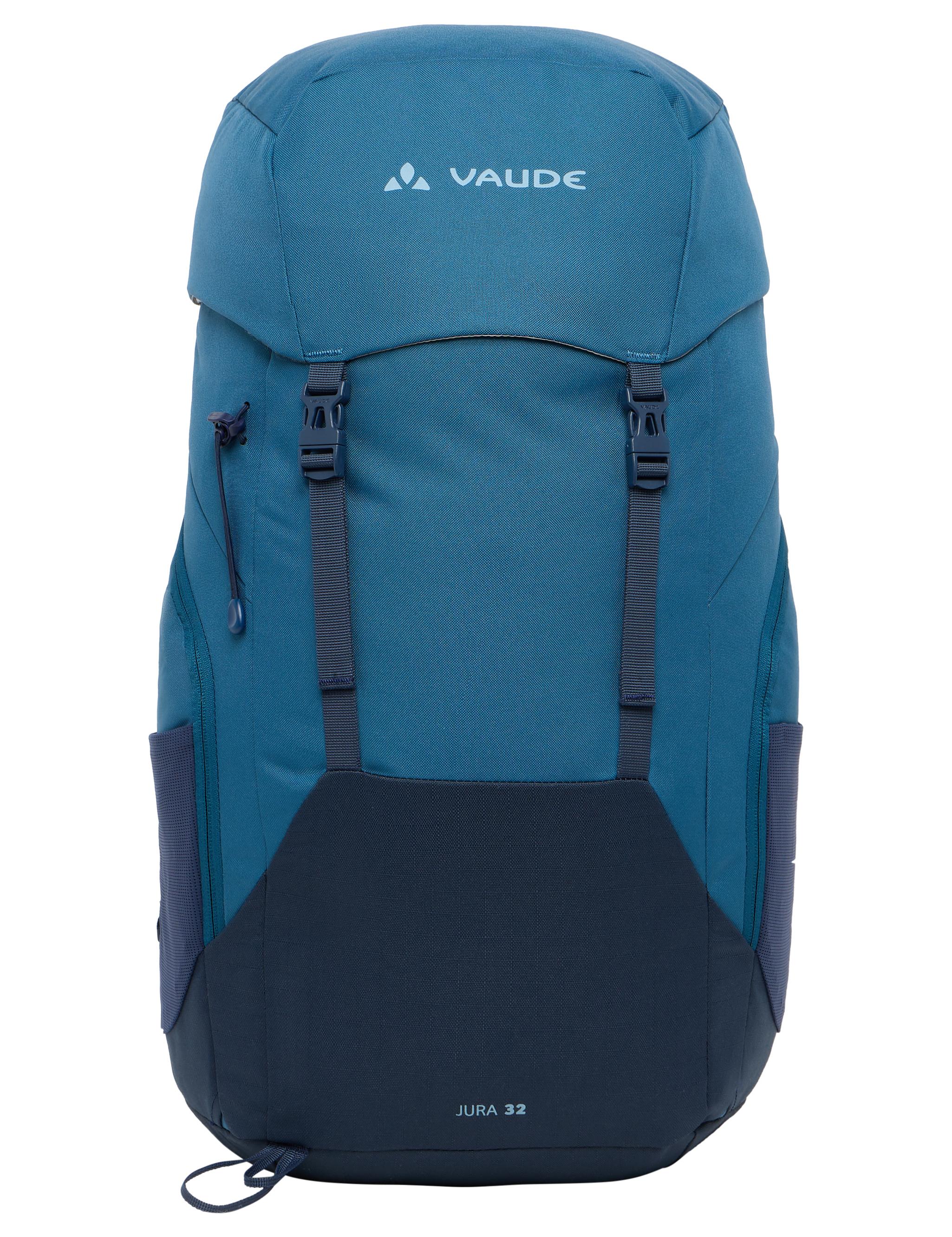 Mehr Stauraum, mehr Flexibilität. Mit seinen 32 Litern Volumen ist der Jura 32 Wanderrucksack bereit für ausgedehnte Tagestouren, den schnellen Einkauf nach der Arbeit oder die gemütliche Hüttenübernachtung. Das durchdachte Design mit Hauptfach, Deckelfach, je einer Stretch- sowie Reißverschluss-Tasche an den Seiten und einer Tasche im Hüftgurt schafft Ordnung. An heißen Tagen sorgt der hinterlüftete Aeroflex 3D Netzrücken für kühlende Ventilation, während die Ergoshape-Schulterträger optimale Bewegungsfreiheit garantieren. Für kürzere Regenschauer ist der Jura 32 mit Eco Finish PFC-frei wasser- und schmutzabweisend ausgerüstet. Bei länger anhaltendem Regen kommt die integrierte Regenhülle zum Einsatz. Außerdem ist der Jura 32 Liter Wanderrucksack mit einer Stockhalterung und einem Brustgurt mit Trinkschlauch-Fixierung ausgestattet. Das VAUDE Green Shape-Label steht für ein umweltfreundliches, funktionelles Produkt aus nachhaltigen Materialien. Als Mitglied mit Leader Status bei der unabhängigen Organisation Fair Wear engagiert sich VAUDE für faire Arbeitsbedingungen und faire Löhne.