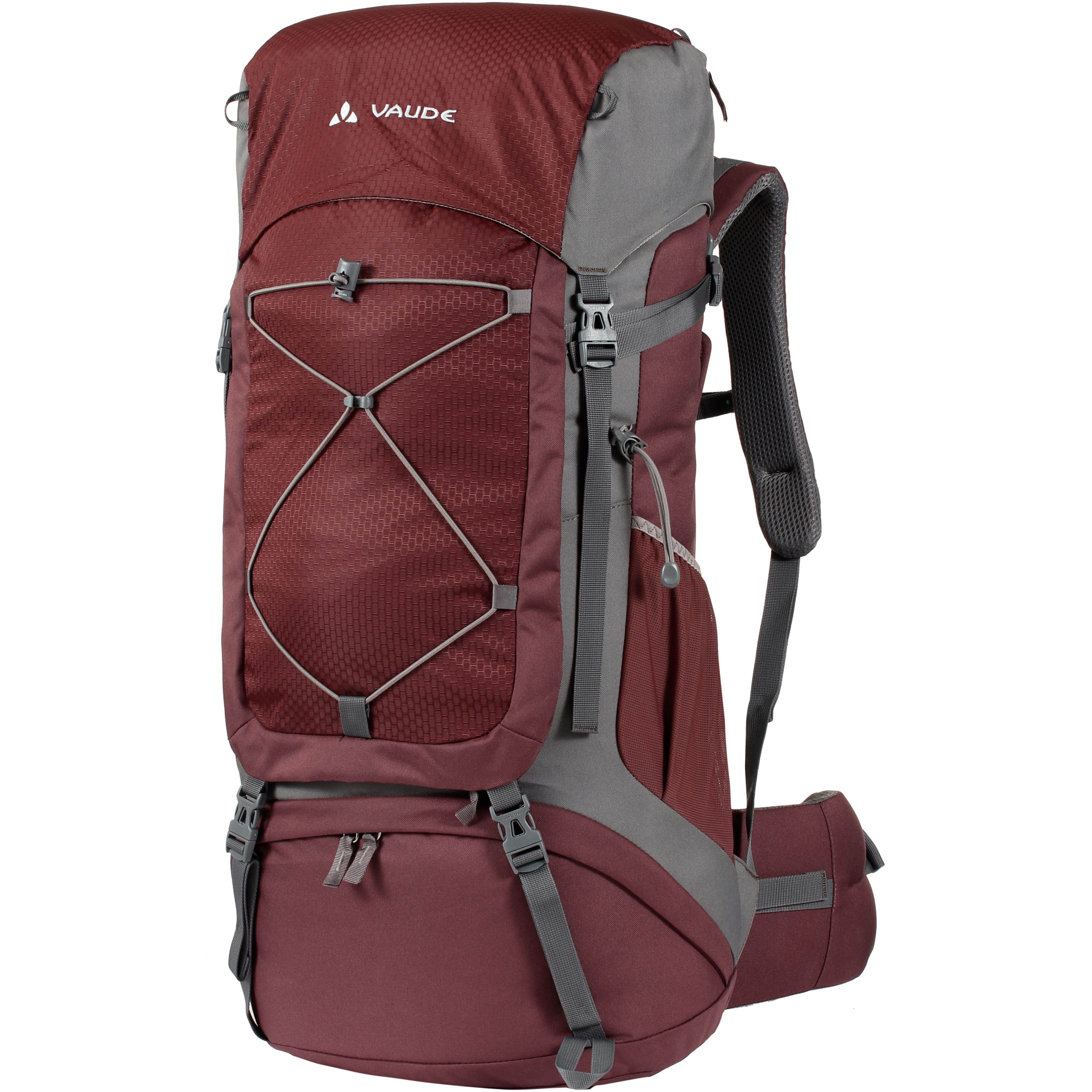 Strapazierfähiger Trekkingrucksack mit höhenverstellbarem Deckel; Deckel mit 1 Außenfach und 1 Netzinnenfach mit Reißverschluss und Key-Clip; Hauptfach mit Kordelzug und Stopper; Reißverschlusszugriff auf das Hauptfach an der Front; 2 Innenfächer; Kompressionsriemen; 2 seitliche Netzfächer; Bungeekordeln auf der Vorderseite; Rückenteil und Schultergurte gepolstert und mit Mesh besetzt; Brustgurt; breite gepolsterte Hüftflossen; separates Bodenfach mit integrierter Regenhülle; Volumen: ca. 50 l, erweiterbar um ca. 10 l; Maße: ca. 70 x 28 x 24 cm; Fair Wear-Produkt; Material 100% Polyamid.