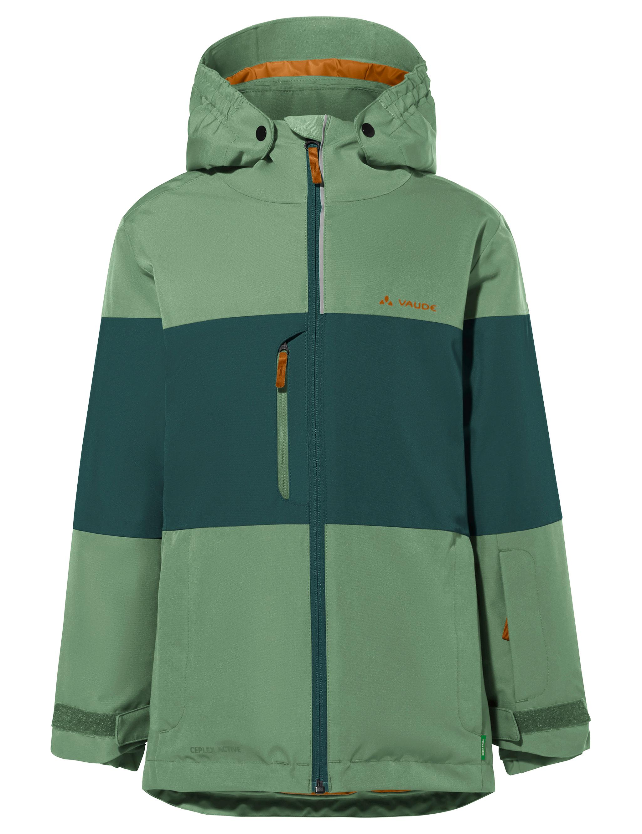 Die Kids Snow Cup Jacket mit helmtauglicher Kapuze ist eine denkbar unkomplizierte Skijacke für Mädchen und Jungen, die sich auf ihre Ausrüstung auf der Piste verlassen wollen. Diese Winterjacke ist mit der wasserdichten, atmungsaktiven Ceplex Active-Membran ausgestattet und sorgt somit für viel Spaß in den Bergen und im Schnee. Durch den abnehmbaren Schneefang, die reflektierenden Dekodrucke und die weitenverstellbaren Armbündchen lässt sich diese Outdoorjacke auch perfekt im Alltag einsetzen. Die Wattierung der Jacke wird vollständig aus recyceltem Polyester hergestellt. Das VAUDE Green Shape-Label steht für ein umweltfreundliches, funktionelles Produkt aus nachhaltigen und bluesign® zertifizierten Materialien.