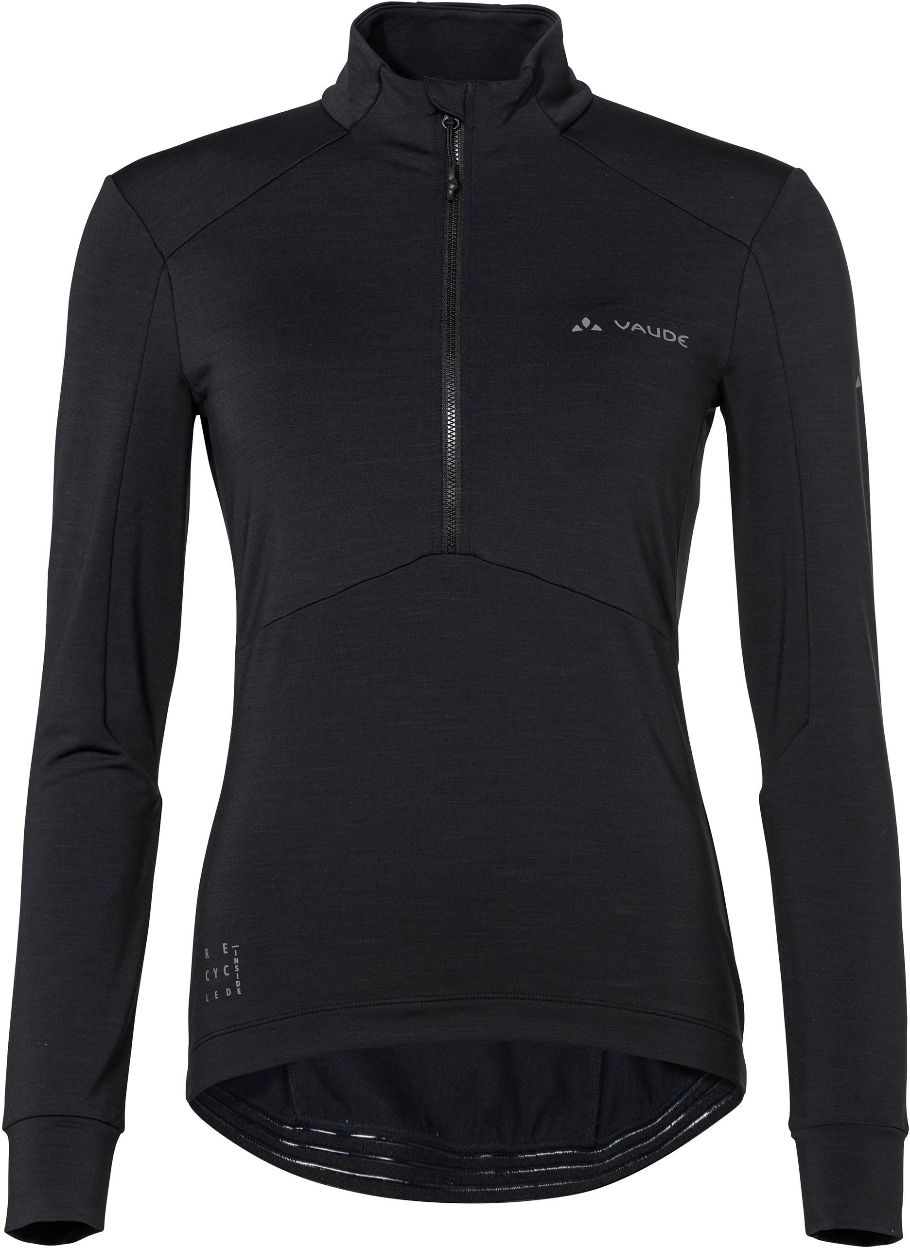 Langärmeliges Fahrradtrikot aus elastischem Material; atmungsaktiv, schnelltrocknend und pflegeleicht; innen leicht angeraut; Stehkragen und halblanger Frontreißverschluss mit Kinnschutz; etwas länger geschnittenes Rückenteil mit 2 Einstecktaschen und einer Reißverschlusstasche; elastische Ärmel- und Saumbündchen; unterer Saum mit rutschfestem Silikondruck innen; reflektierende Elemente; Green Shape; Grüner Knopf; Fair Wear Foundation; Material 91% Polyester (62% recycelt), 9% Elastan.