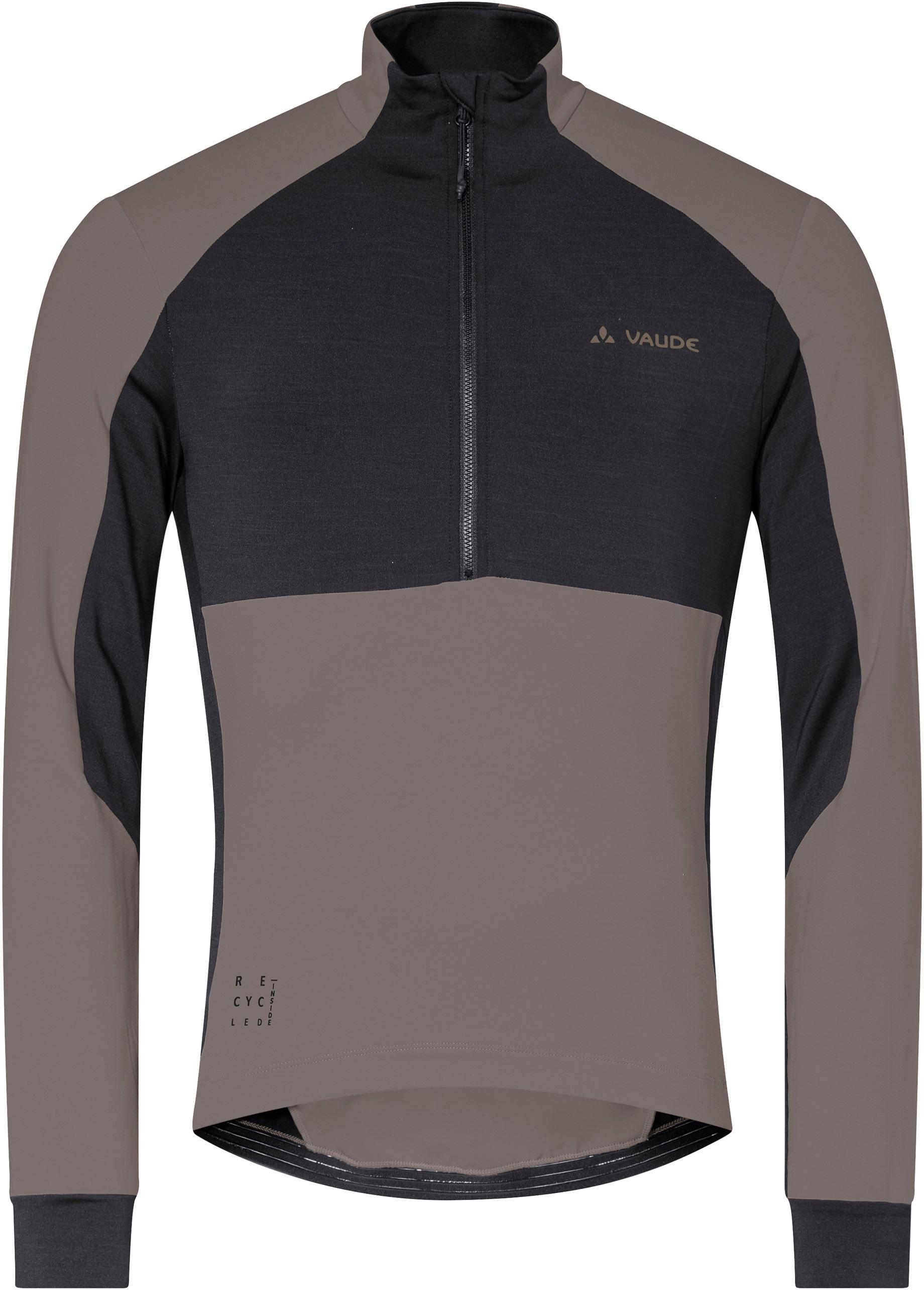 Elastisches Fahrradtrikot mit langen Ärmeln; atmungsaktives, schnelltrocknendes und pflegeleichtes Gewebe; innen leicht angeraut; Stehkragen und halblanger Frontreißverschluss mit Kinnschutz; 2 Einstecktaschen und eine Reißverschlusstasche auf der Rückseite; etwas länger geschnittenes Rückenteil; elastische Ärmel- und Saumbündchen; unterer Saum mit rutschfestem Silikondruck innen; reflektierende Elemente; Green Shape; Grüner Knopf; Fair Wear Foundation; Material 91% Polyester (62% recycelt), 9% Elastan.