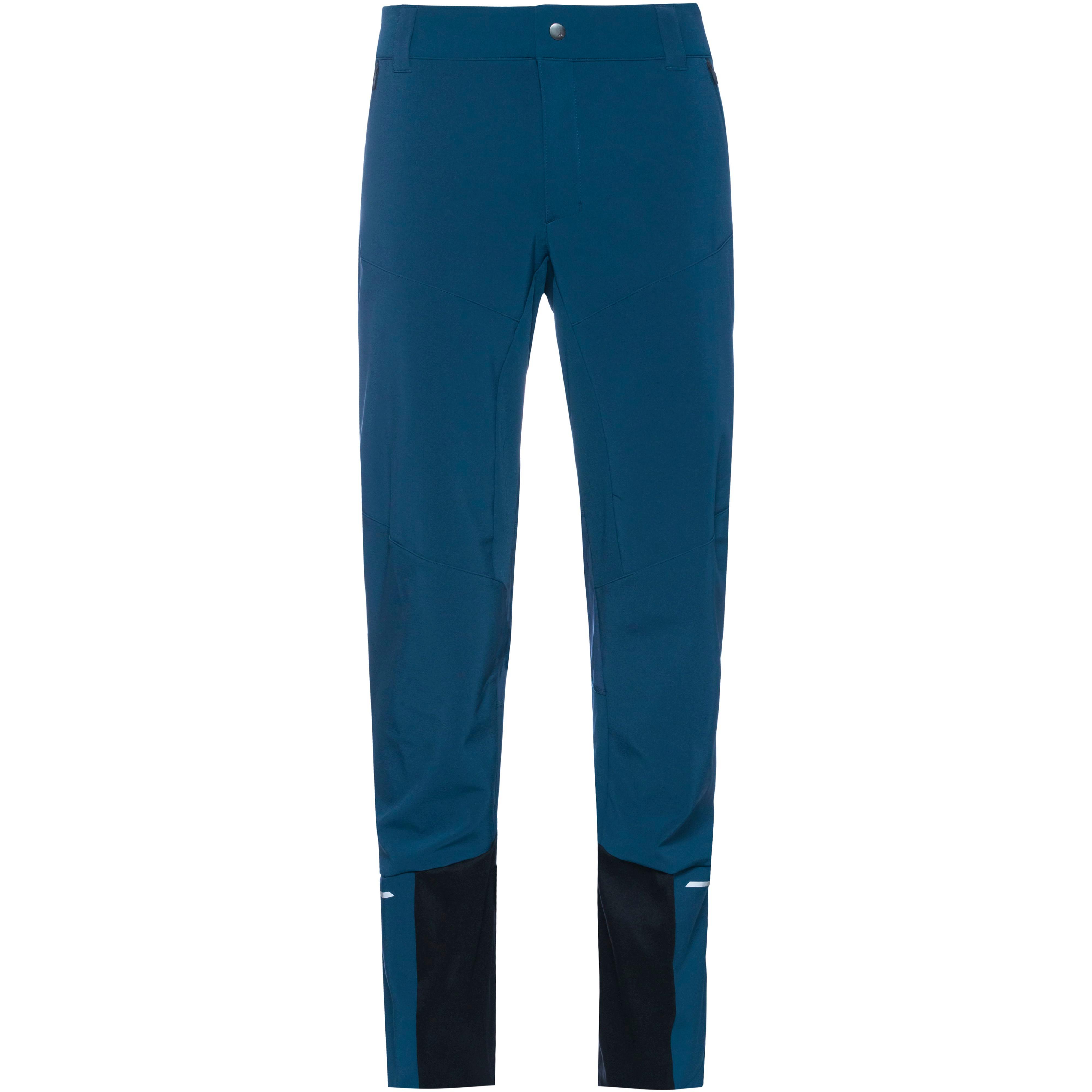 Lange Softshellhose mit winddichter und wasserabweisender Eigenschaft; teilelastischer Bund mit Gürtelschlaufen; Knopf- und Reißverschluss; 2 Reißverschlusstaschen; Nähte auf der Vorderseite; offene Beinabschlüsse; elastisch; enthält Recyclingmaterial; Material 90% Polyester (davon 50% recycelt), 10% Elastan, Material II 100% Polyurethan.
