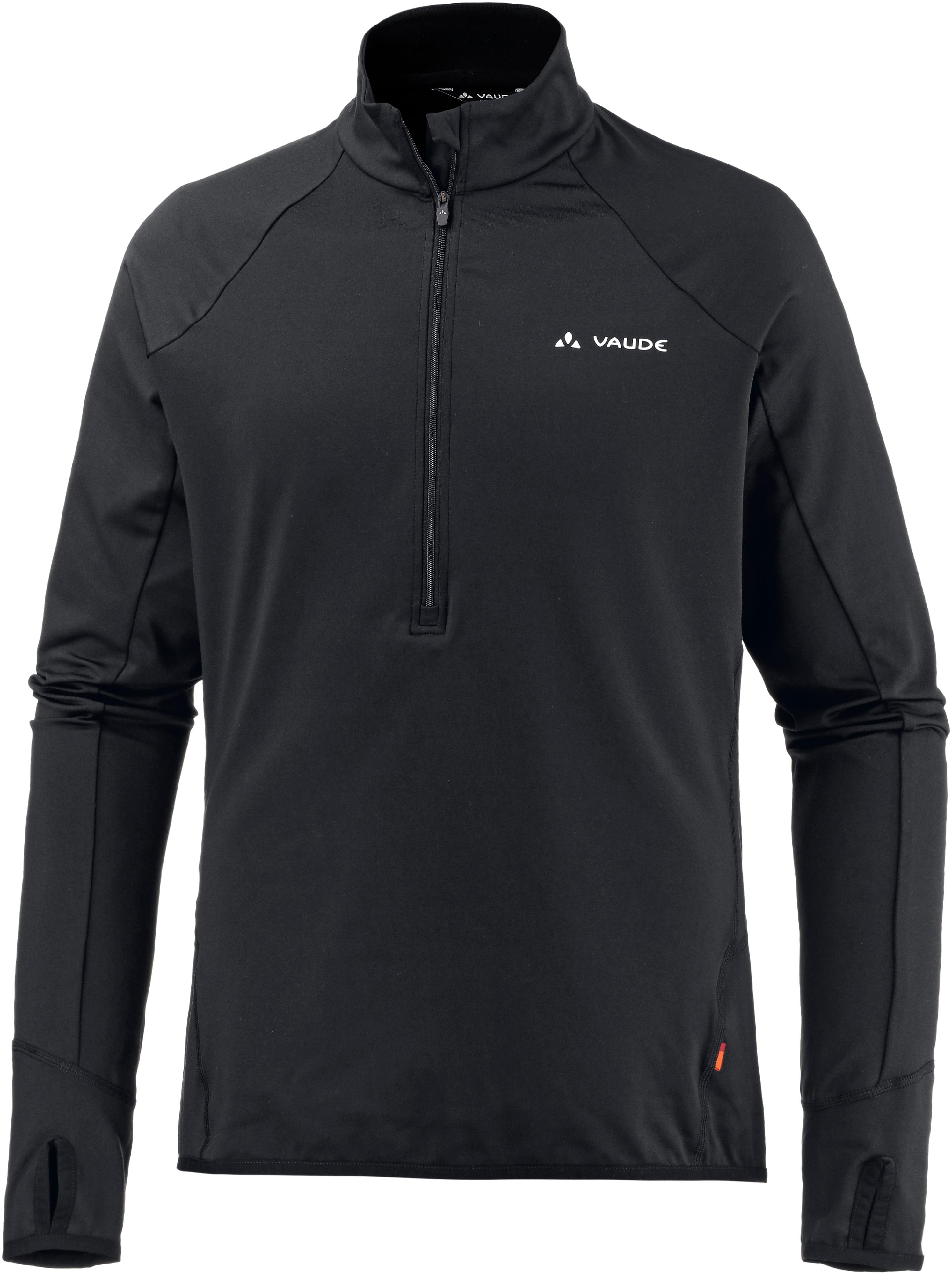 VAUDE LIVIGNO. Fleecepullover mit körpernaher Passform; flache Nähte; Stehkragen mit Kinnschutz kurzer, hinterlegter Frontreißverschluss; Raglanärmel mit Daumenlöchern; ohne Seitennähte; verlängertes Rückenteil; innen weich; Material 89% Polyester, 11% Elastan.