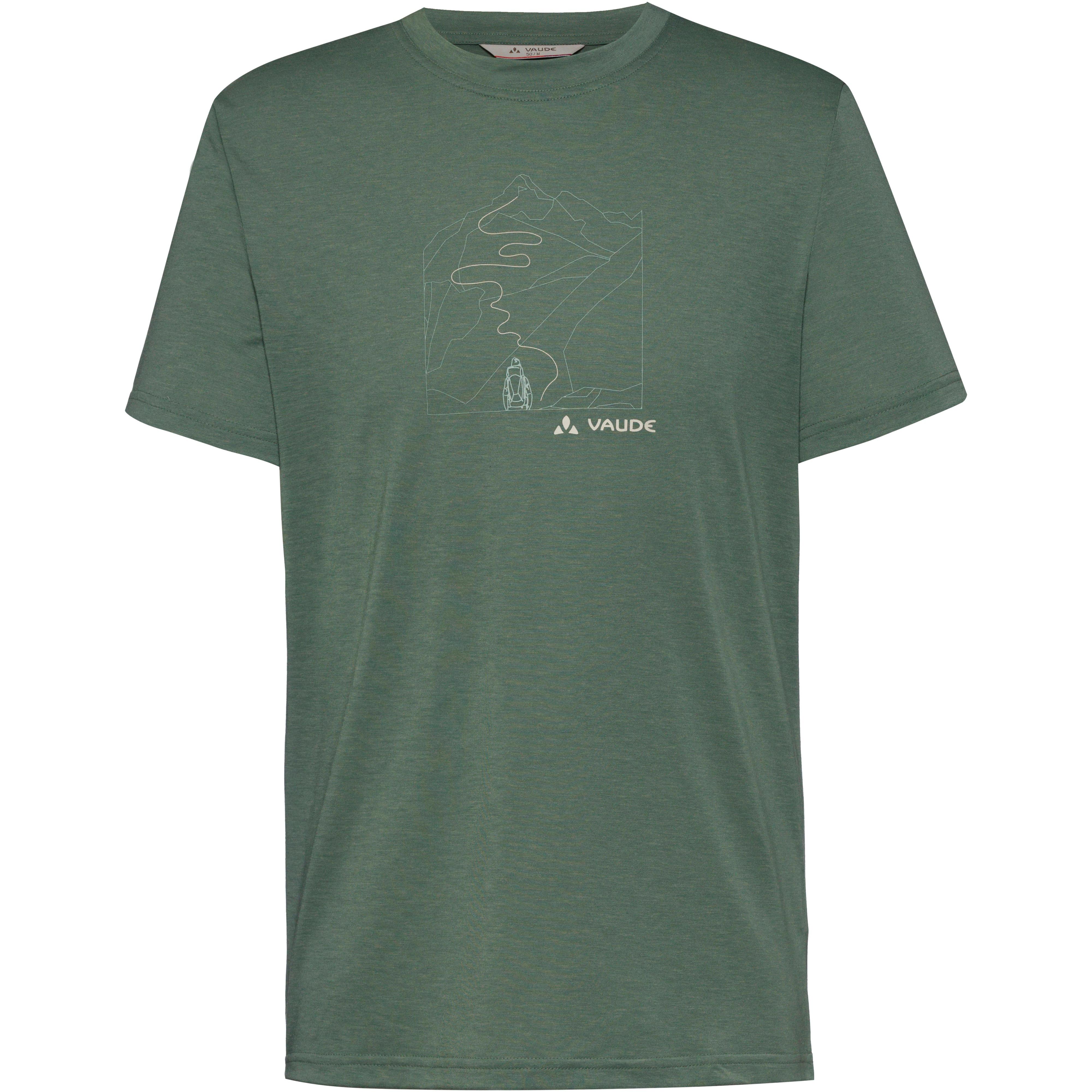 Funktionsshirt mit Bergmotiv und „Leave no Trace“-Schriftzug auf der Vorderseite; enthält Merinowolle mit feuchtigkeitsregulierender und schnelltrocknender drirelease® Funktion für ein angenehm natürliches Tragegefühl; Rundhalsausschnitt; kurze Ärmel; gerader Schnitt; Fair Wear Foundation; myclimate-neutral; Material 88% Polyester, 12% Wolle.