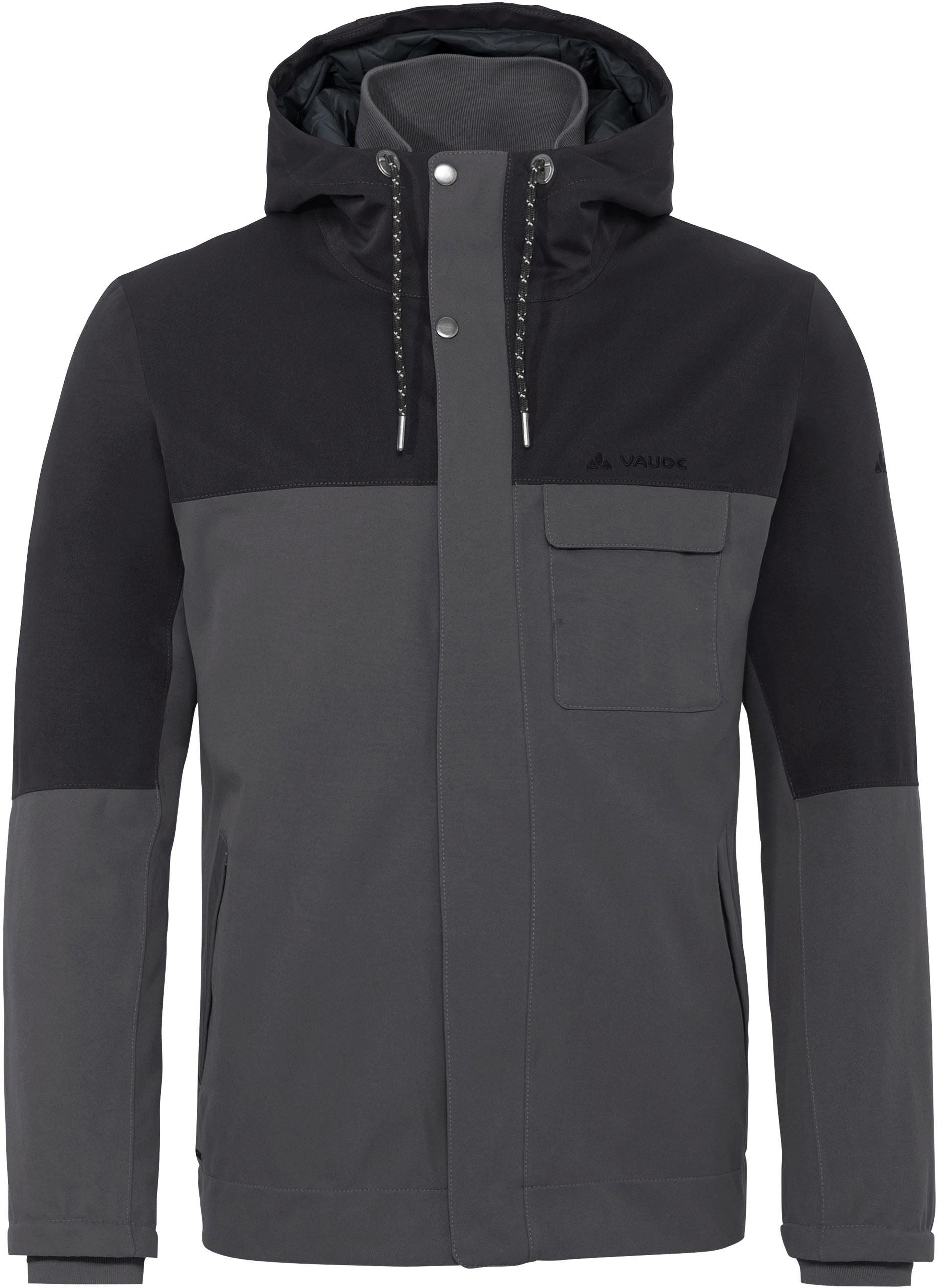 Atmungsaktive, wasser- und winddichte Winterjacke im Colourblock-Design; 2-lagig; überwiegend aus Recyclingmaterialien hergestellt; feste Kapuze mit Kordelzug; Frontreißverschluss mit Windschutzblende; zusätzlicher Rippkragen; elastische Rippbündchen an den Ärmelabschlüssen; 1 Brusttasche und 2 Eingrifftaschen mit Druckknopf; 1 Innentasche; hochwertige, umweltfreundliche Primaloft® Black Eco Wattierung; mit dauerhaft wasserabweisendem, ohne PFC hergestelltem Eco Finish; bluesign® product; Grüner Knopf; Green-Shape-Produkt; Material I 100% Polyester (davon 58% recycelt), Material II 100% Polyurethan, Material III 100% Polyamid, Material IV 100% Polyester.