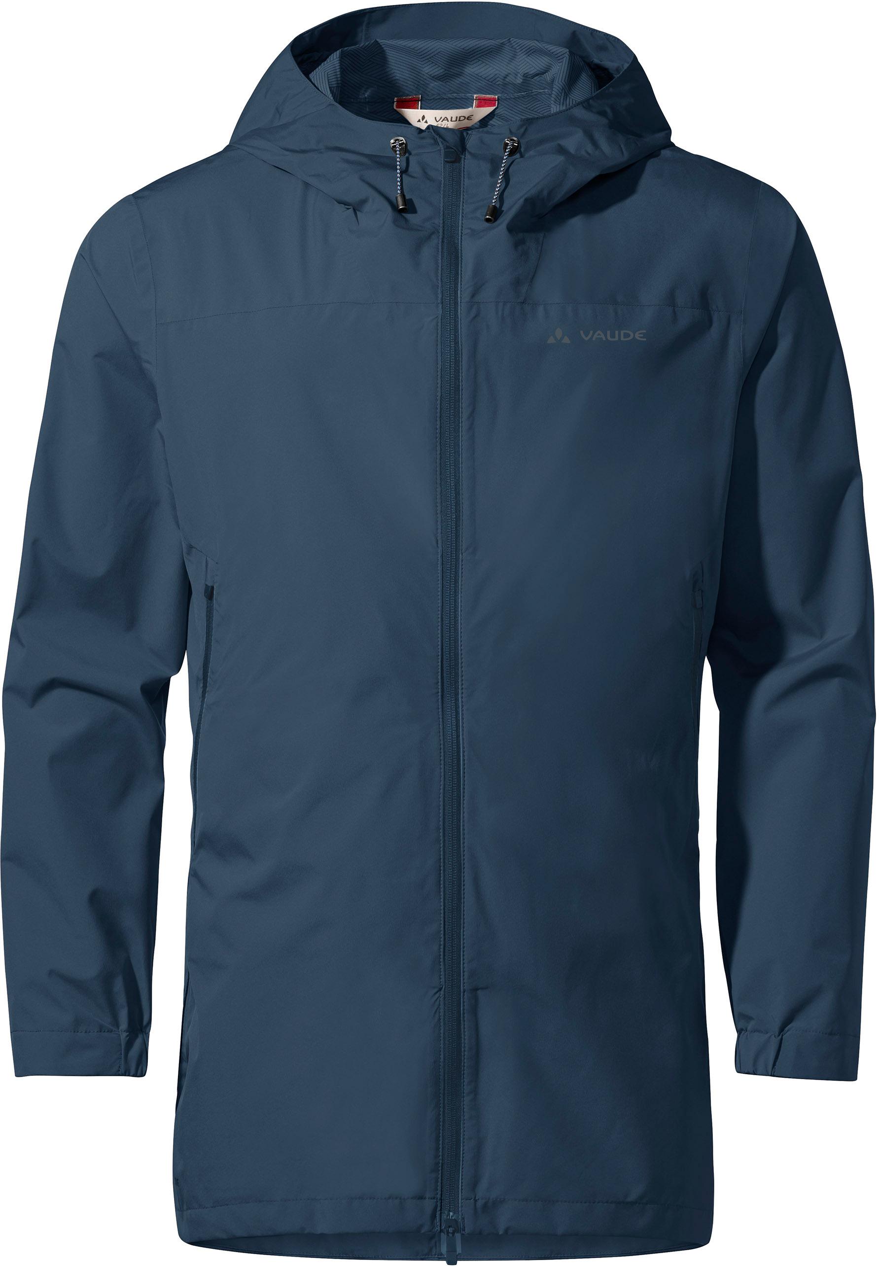 Leichte, wetterfeste Regenjacke aus 2,5-lagigem Material; mit angeschnittener, weitenregulierbarer Kapuze; Kinnschutz am Kragen; Frontreißverschluss; 2 Reißverschlusstaschen; 1 Innentasche; komplett in der eigenen Innenjacke verstaubar; teilelastische Ärmelabschlüsse; Rückenventilation; wind- und wasserdicht sowie atmungsaktiv dank Ceplex active-Membran; mit dauerhaft wasserabweisender, ohne PFC hergestellter Imprägnierung; aus recyceltem Material hergestellt; Grüner Knopf; Green Shape-Produkt; Regular Fit; Material 100% Polyester (recycelt); Material II 100% Polyurethan.