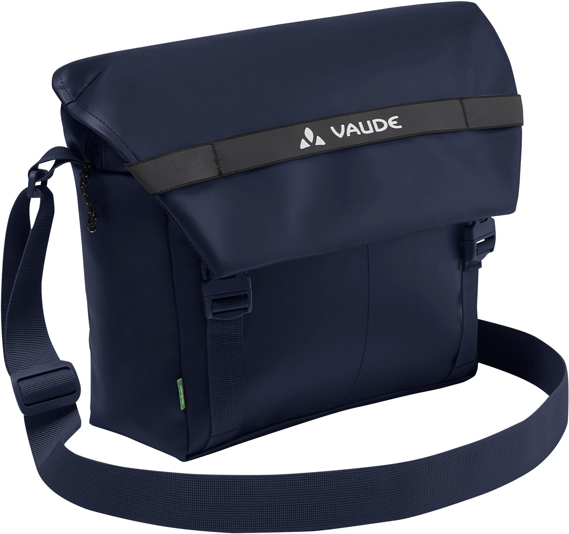 Praktische Messenger-Tasche für Alltag und Arbeit; Deckel verschließbar mit Textilgurten und Kunststoffschnallen; Hauptfach mit Reißverschluss; Einsteckfach für A4 Dokumente; Stifthalter; 2 Einsteckfächer; hinteres Reißverschluss-Fach; auf Trolley aufsteckbar; reflektierende Elemente; verstellbarer Schultergurt; wasser- und schmutzabweisendes, ohne PFC hergestellte EcoFinish; langlebig; PVC-frei; Green Shape; Grüner Knopf; Fair Wear Foundation; myclimate neutral; Volumen: 9 l; Maße (H/B/T): ca. 24 x 30 x 10 cm; Gewicht: ca. 400 g; Material 100% Polyester.