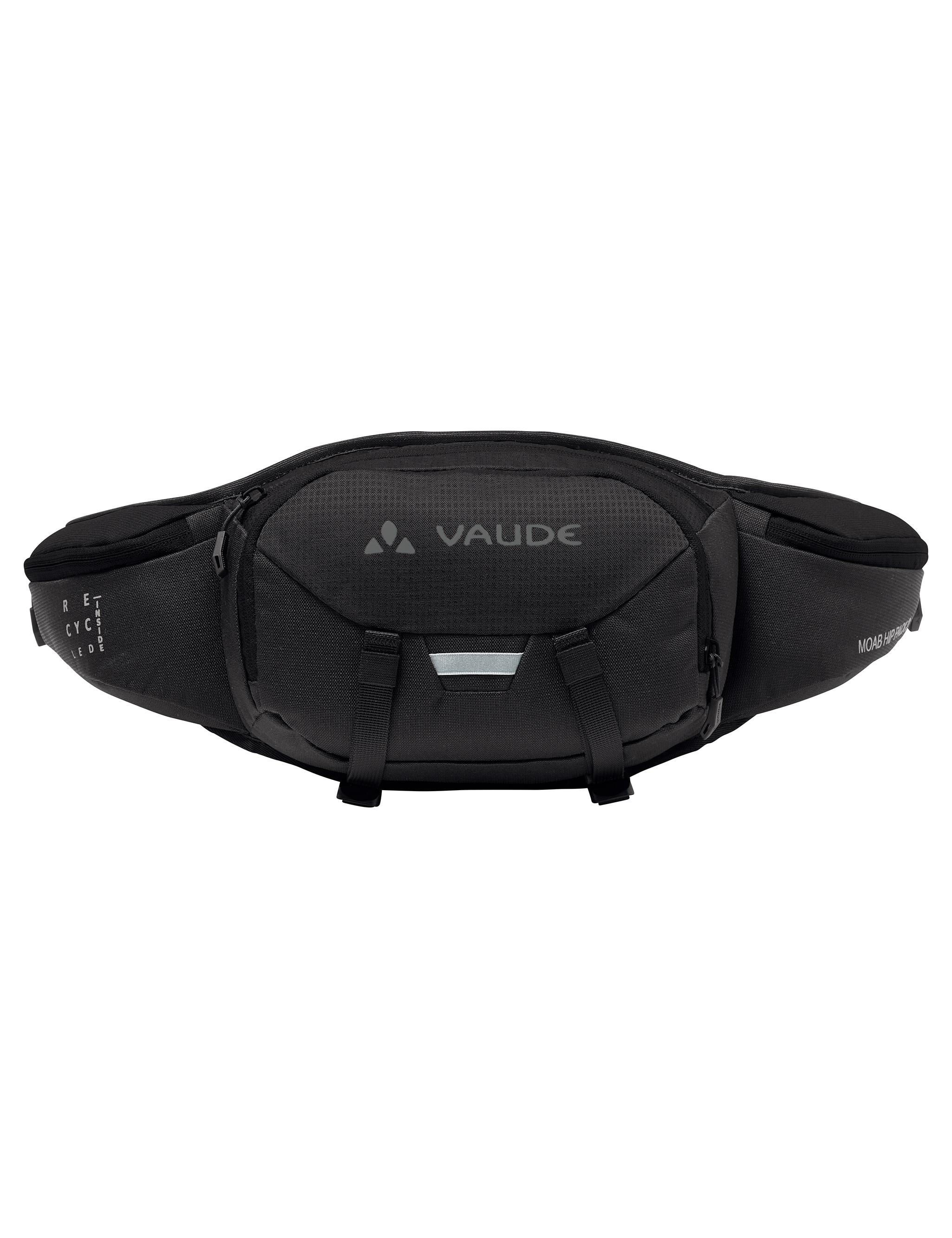 Die kleine, technische Hüfttasche wurde in Ergänzung zur größeren Tasche speziell für die Biker entwickelt, die auf der sportlichen Feierabendtour nur das Nötigste dabeihaben wollen oder die Flasche am Rad befestigt haben. Die sportlich geschwungene Hüfttasche passt sich durch den elastischen Hüftgurt jeder Figur und jeder Fahrlage an. Komfortable Polsterflächen vermeiden Druckpunkte im Rückenbereich. Das hintere Fach bietet über die komplette Breite genügend Platz für Regenjacke und Ersatzschlauch. 2 kleine, mit Reißverschluss verschlossene Seitentaschen schmiegen sich perfekt um den Hüftbereich und verwahren Minitool, Handy oder Riegel. Ein auf die Front aufgesetztes Fach ermöglicht gute Organisation des Werkzeugs. Am Boden der sportlichen Hüfttasche lassen sich sowohl eine Minipumpe als auch vor der Auffahrt Protektoren befestigen. Eine Regenhülle für Schutz vor Schauern und Schmutz sowie ein reflektierender Webbingloop und das reflektierende VAUDE Logo runden dieses Komfortpaket mit 3 l Volumen ab. Dieses Produkt ist überwiegend aus recycelten Materialien hergestellt und mit Eco Finish umweltfreundlich ohne Fluorcarbone (PFC) wasserabweisend ausgerüstet. Das VAUDE Green Shape-Label steht für ein umweltfreundliches, funktionelles Produkt aus nachhaltigen und bluesign® zertifizierten Materialien.