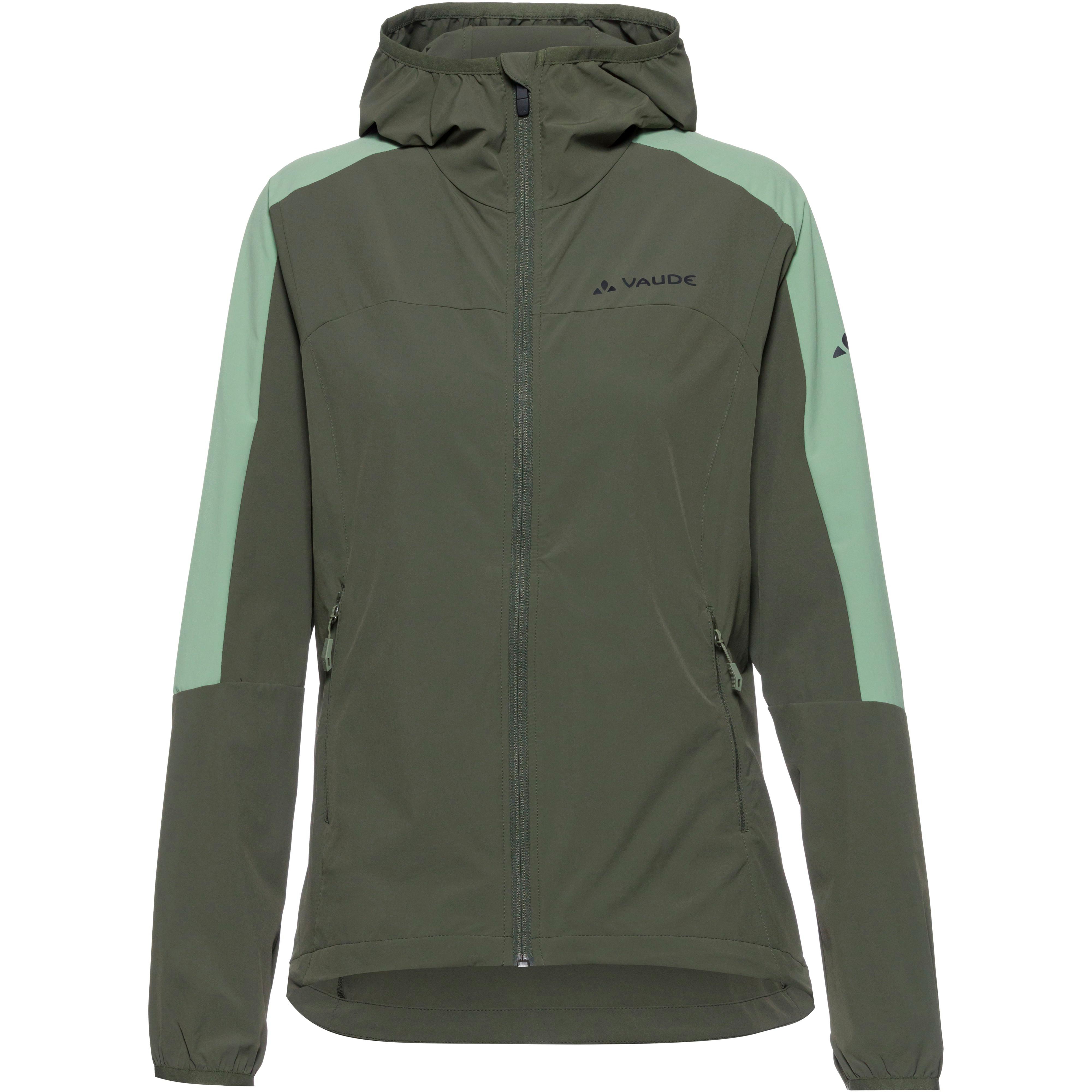 Fahrradjacke für Damen, aus elastischem Stretchgewebe, mit dauerhaft wasserabweisender sowie ohne PFC hergestellter Eco Finish Imprägnierung; die atmungsaktive sowie winddichte Funktion runden den Wetterschutz der Jacke ab; Kapuze; Kragen mit Kinnschutz; hinterlegter Frontreißverschluss; die Halbraglanärmel sorgen für optimale Bewegungsfreiheit bei allen Aktivitäten; Seitentaschen mit Reißverschlüssen und verlängerten Zippbändchen; Markendetails; reflektierende Elemente; unter fairen Bedingungen gemäß den Standards der Fair Wear Foundation hergestellt; klimaneutral produziert durch myclimate; umweltfreundliches Green Shape Eco-Produkt; Grüner Knopf-Produkt aus sozialer und ökologischer Herstellung; Material 88% Polyamid (recycelt), 12% Elastan.