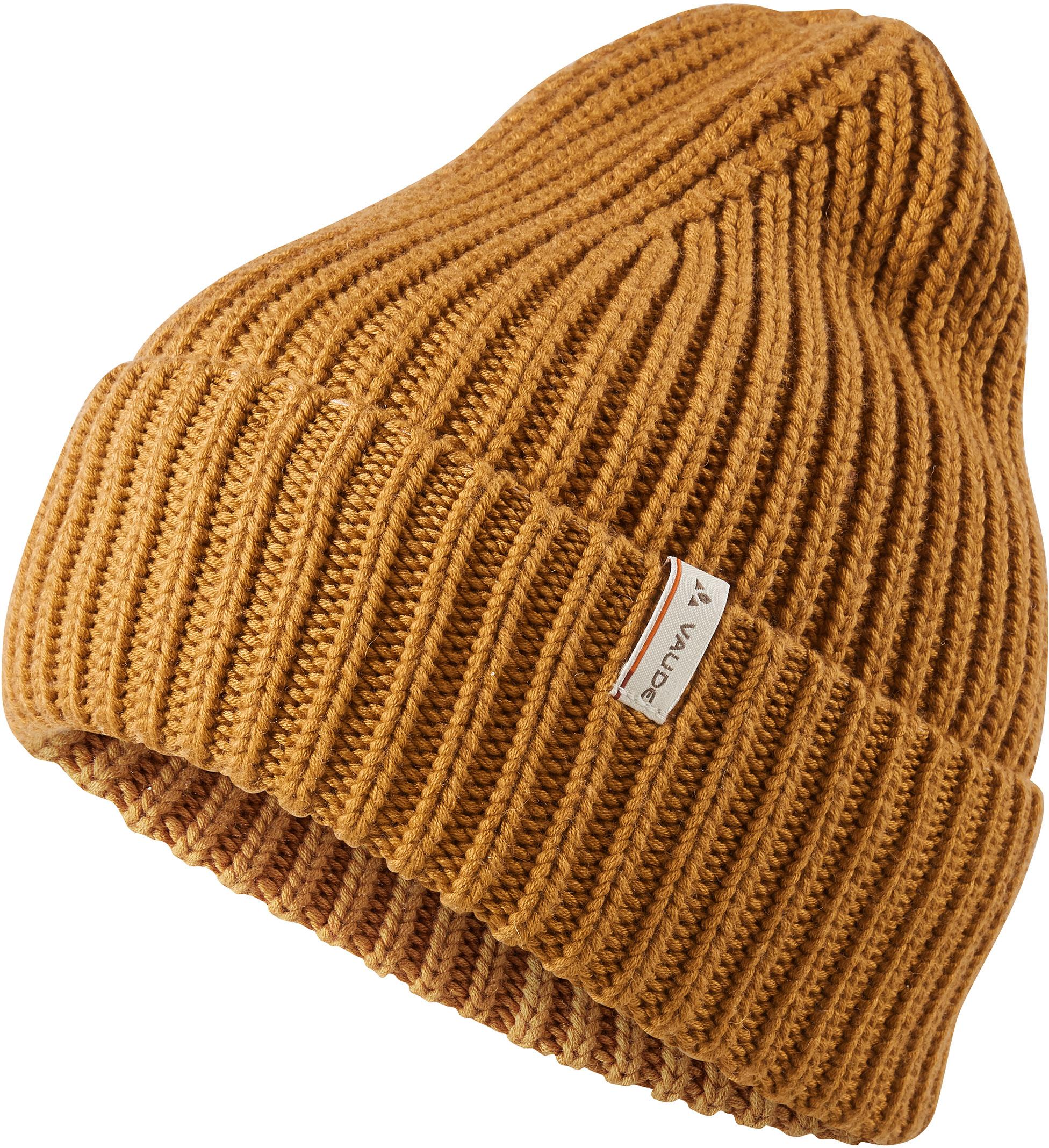 Gestrickte Mütze in grobem Rippstrick; mit Wollanteil; breiter Umschlagsaum; wärmend; Green Shape; Grüner Knopf; enthält Recyclingmaterial; Material 55% Polyester (recycelt), 20% Polyacryl, 20% Polyamid, 5% Wolle.