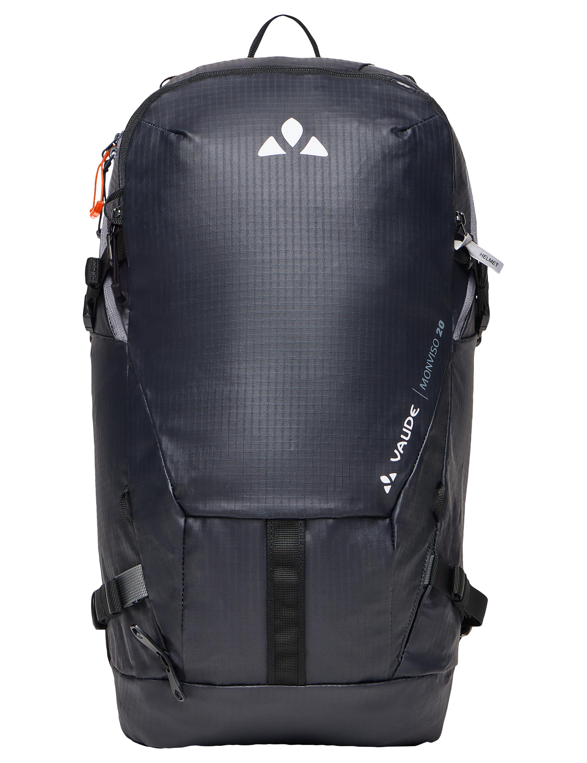 Der bewusst schlank geschnittene und 20 Liter fassende Skitourenrucksack richtet sich an Purist*innen. Ausreichend dimensioniert für Basics wie Sicherheitsausrüstung, Daunenjacke, Verpflegung & Co. sitzt der Monviso 20 Skitourenrucksack dennoch flach am Rücken, so dass er auch im Sessellift nicht abgesetzt werden muss. Trotz der kompakten Passform ist alles an Bord, was einen modernen Skitourenrucksack auszeichnet. Die Lawinenschaufel wird auf der rückenfernen Seite im Hauptfach verstaut. Ski und Snowboard lassen sich für steile Anstiege in verschiedenen Varianten befestigen, auch für Eisgerät und Stöcke gibt es Halterungen. Im Aufstieg fixiert die Helmhalterung sowohl kompakte Skitouren- als auch voluminösere Skihelme wackelfrei am Rucksack. Innen gibt es eine gepolsterte Brillentasche, ein kleines Wertsachenfach und die Aufnahme fürs Trinksystem. Cleveres Detail: Alle Reißverschlüsse, Ösen und Schlaufen sind gut mit Handschuhen zu bedienen. Bei der Abfahrt sorgt das Tragesystem aus Ergoshape-Schultergurten, dem schneeabweisenden Synergy-Mold-Kontaktrücken und nahtlos anschließenden Hüftflossen für einen sicheren Sitz. Das vollständig recycelte Polyamid macht den Skitourenrucksack sehr robust, das PFC-freie Eco Finish lässt Wasser und Schmutz abperlen. Das VAUDE Green Shape-Label steht für ein umweltfreundliches, funktionelles Produkt aus nachhaltigen Materialien. Als Mitglied mit Leader Status bei der unabhängigen Organisation Fair Wear engagiert sich VAUDE für faire Arbeitsbedingungen und faire Löhne.