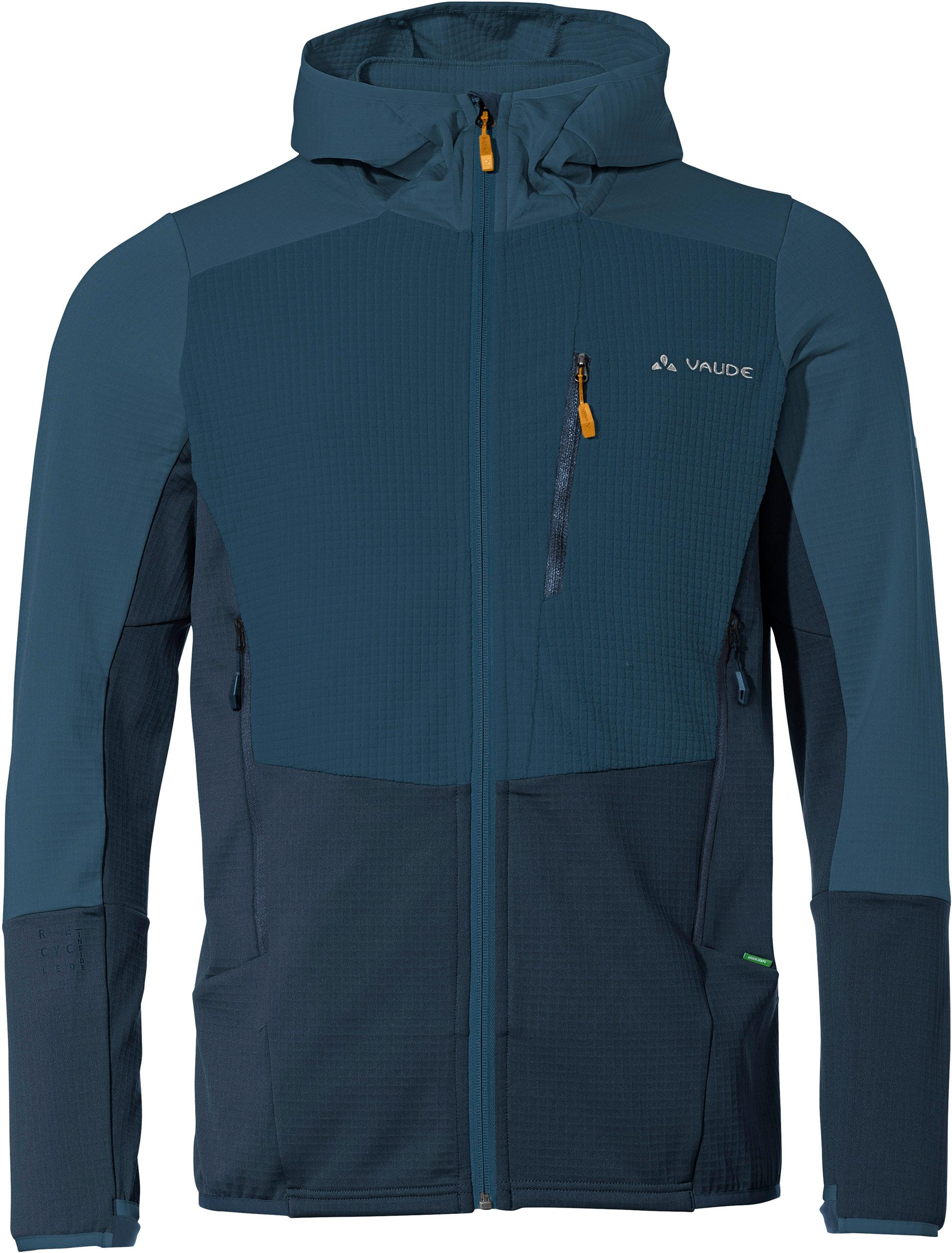 Warme Fleecejacke aus Stretchmaterial; feuchtigkeitsregulierend und schnelltrocknend; feste Kapuze mit hohem Kragen; durchgehender Frontreißverschluss; Brusttasche mit Reißverschluss; 2 seitliche Reißverschlusstaschen, mit Klettergurt und Rucksack kompatibel; Ärmelbündchen mit Daumenschlaufen; Grüner Knopf; Green Shape; Obermaterial 93% Polyester (recycelt), 7% Elastan; Futter 100% Polyester (recycelt).