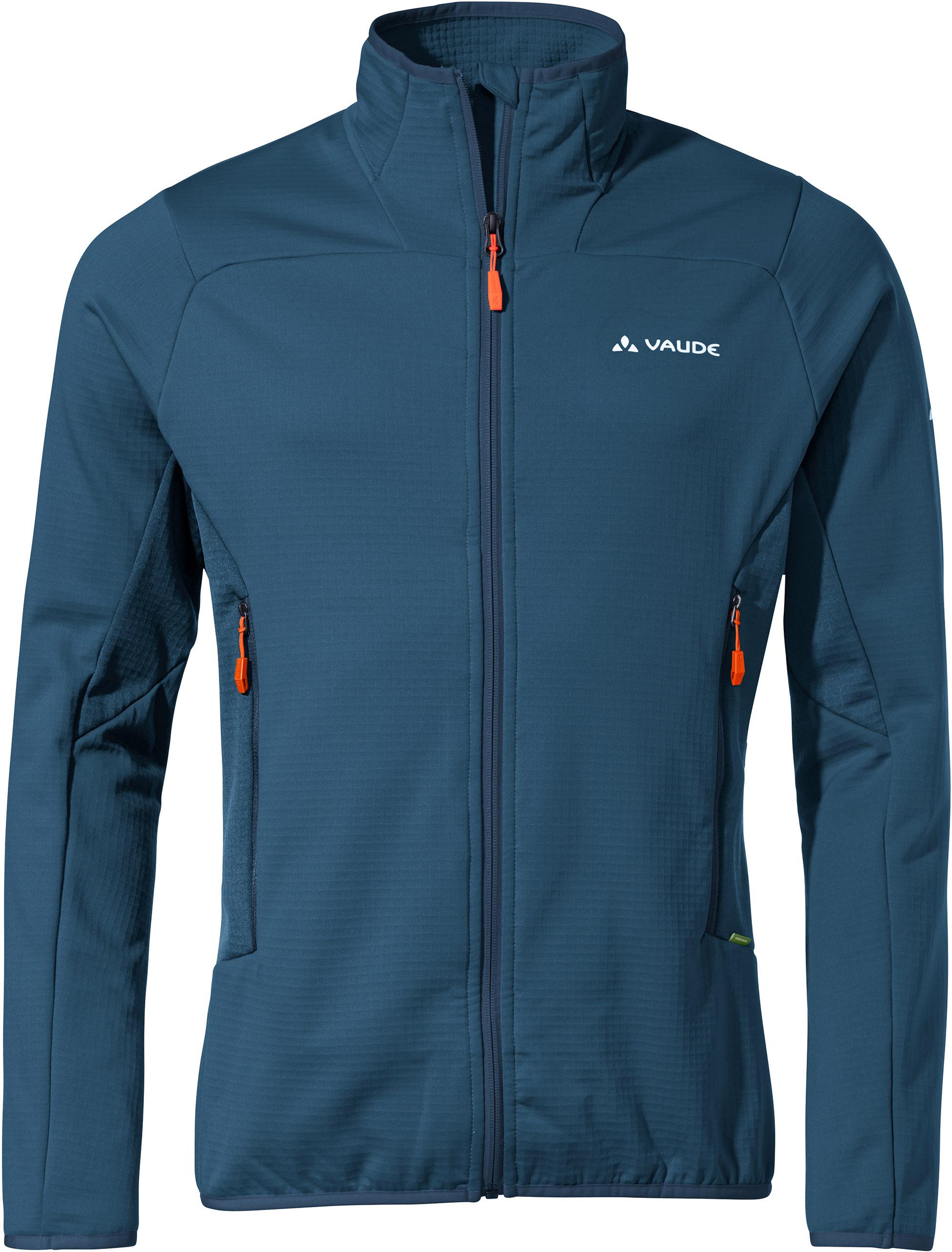 Stretch-Fleece-Jacke für Herren mit schnelltrocknender Eigenschaft; Kinnschutz am Stehkragen; durchgehender Frontreißverschluss; 2 Reißverschlusstaschen; Abschlüsse mit schmalen Elastikbündchen; Green Shape; Grüner Knopf; enthält Recyclingmaterial; Material 93% Polyester (recycelt), 7% Elastan; Material II 100% Polyester.