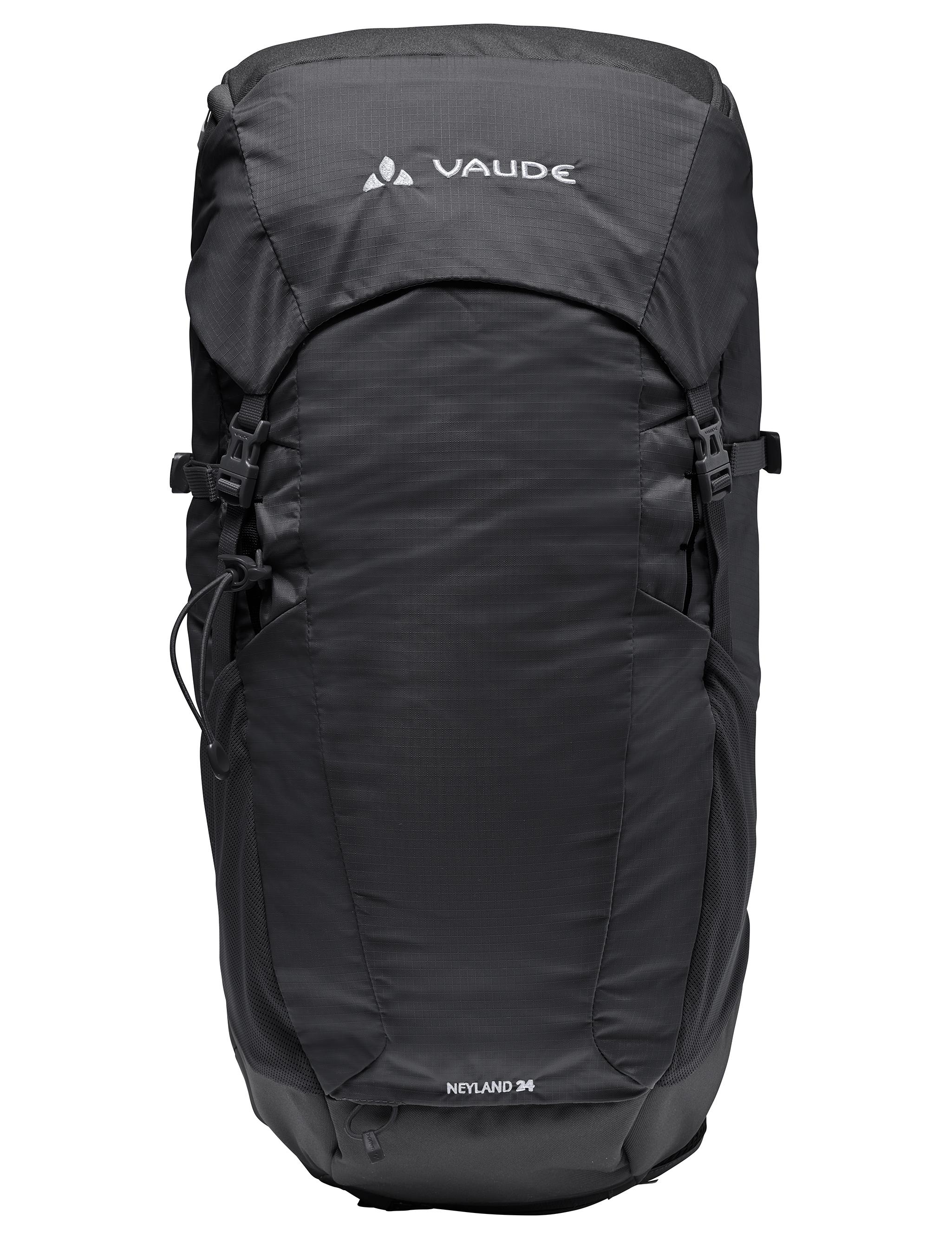 Moderner Wanderrucksack mit Deckelverschluss. Der Neyland 24 eignet sich für kleine Bergtouren und Wandertouren gleichermaßen. Sein innovatives Rückensystem mit den strukturierten Schaumstoffmodulen hinter dem Netz sorgt einerseits für eine gute Belüftung und andererseits für einen stabilen Rückenkontakt, sodass der kleine Rucksack trotz Ventilation flächig und stabil auf dem Rücken aufliegt. Die integrierte EMP Platte (ergonomic movement panel) unterstützt die natürliche Rückenbeugung beim Aufstieg und verhindert gleichzeitig, dass das Gepäck auf den Rücken durchdrücken kann. Ausgestattet ist der kleine Wanderrucksack mit einem Deckelfach, einem geräumigen Hauptfach, einem separaten Trinksystemfach und einem Fach mit Regenhülle. In die seitlichen Stretch-Taschen passen Getränk, Mütze oder andere Kleinutensilien. Wanderstöcke können an der Stockbefestigung befestigt werden und die seitlichen Kompressionsriemen dienen als weitere Gepäckfixierung. Der Neyland 24 wurde aus überwiegend recyceltem Material hergestellt. Das VAUDE Green Shape-Label steht für ein umweltfreundliches, funktionelles Produkt aus nachhaltigen und zertifizierten Materialien.