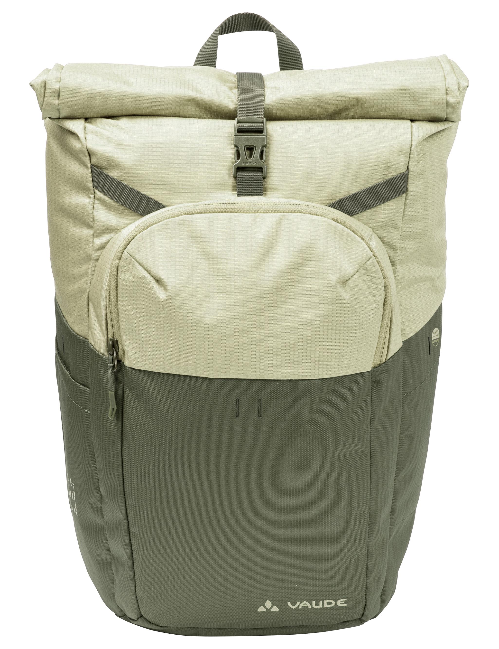 Unser Okab Daypack mit stolzen 25 l Volumen ist in seiner Neuausführung jetzt noch umweltfreundlicher! Das widerstandsfähige Material ist recycelt und dank Eco Finish umweltfreundlich wasserabweisend ohne Fluorcarbone (PFC) ausgerüstet - falls es doch einmal nieseln oder regnen sollte. Ansonsten ist dieser geräumige Rollverschluss-Daypack in der bewährten Ausführung geblieben: Ein 13,3" oder schmales 15" Laptop findet im gepolsterten Hauptfach Platz, kann aber auch durch einen Seiten-Reißverschluss entnommen werden, ohne den Daypack zu öffnen. In Haupt- und Frontfach sorgen übersichtliche Organizer für Ordnung, Getränk und Powerbank können in den Seitenfächern verstaut werden. Optional kann ein Light me up Kit Lichtleiter dazubestellt werden. Den in die Vorrichtung einschlaufen und in Kombination mit einer herkömmlichen Powerbank zum Leuchten bringen. Das ist vor allem von Vorteil, wenn man in der Dunkelheit mit dem Rad unterwegs ist. Doppelt radtauglich wird dieser urbane Daypack durch den extra Brustgurt und die zusätzlichen Bänder für die Helmfixierung. Für einen angenehmen Tragekomfort auch in voll beladenem Zustand sorgen der gut gepolsterte Vent-Urban Rücken und die gepolsterten, ergonomischen Schulterträger. Das VAUDE Green Shape-Label steht für ein umweltfreundliches, funktionelles Produkt aus bluesign®-zertifizierten, nachhaltigen Materialien.