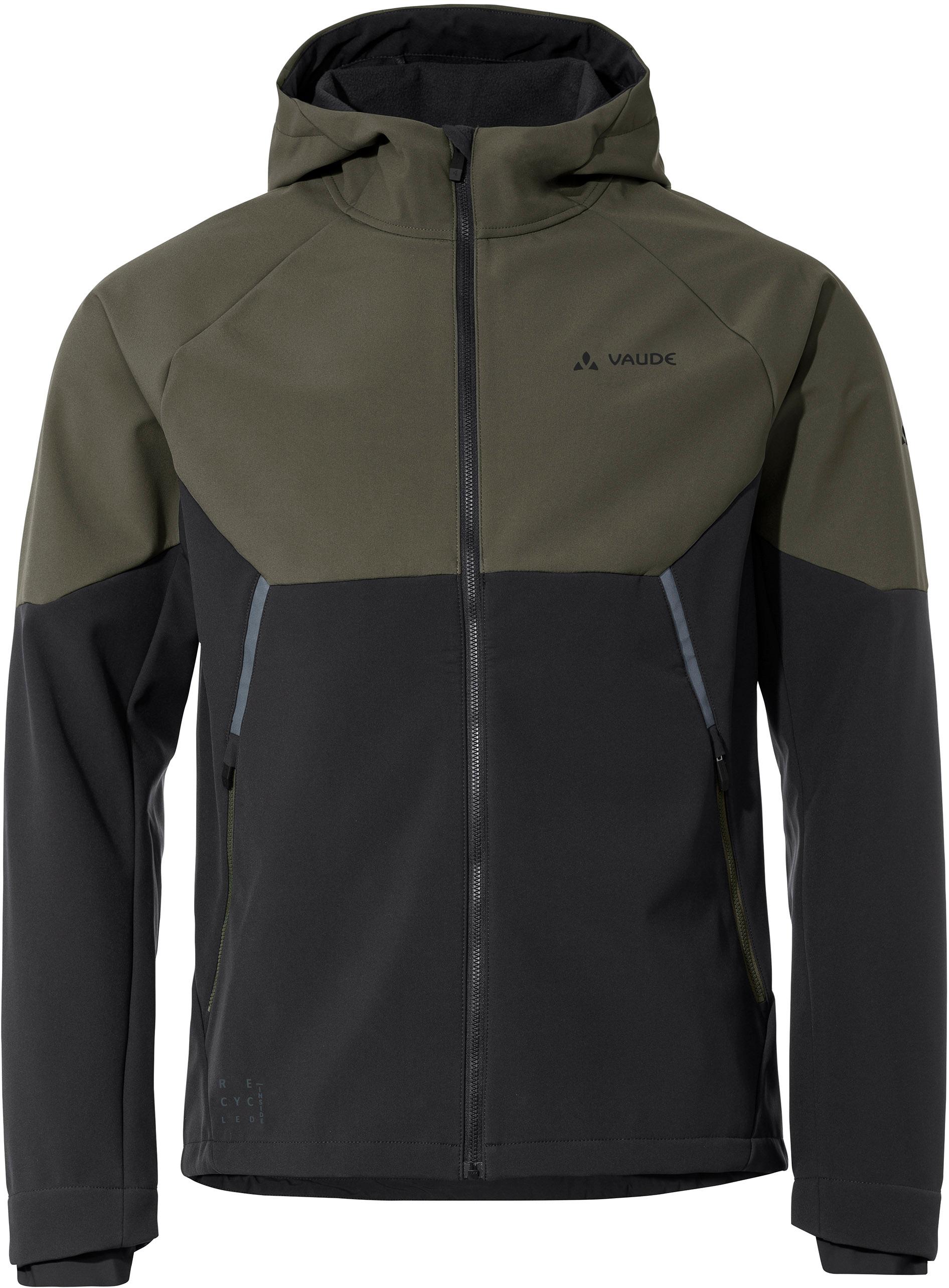 Softshell-Fahrradjacke aus wind- und wasserdichtem Material; Windproof 100-Gewebe aus einem schützendem Außenstoff mit eingearbeiteter Membran und wärmendem Innenstoff; schmutz- und wasserabweisendes Eco Finish ohne PFC; funktionaler Schnitt mit vorgeformten Ärmeln; feste Kapuze; Frontreißverschluss mit Kinnschutz am Kragen; 2 Reißverschluss-Fronttaschen mit Belüftungsmöglichkeit; elastische Ärmelbündchen; Saum mit Kordelzug durch die Taschen weitenregulierbar; reflektierende Elemente; Green Shape; Grüner Knopf; Fair Wear Foundation; Material I 100% Polyurethan; Material II 100% Polyester (recycelt); Material III 100% Polyester (66% recycelt); Material IV 78% Polyamid (recycelt), 22% Elastan.