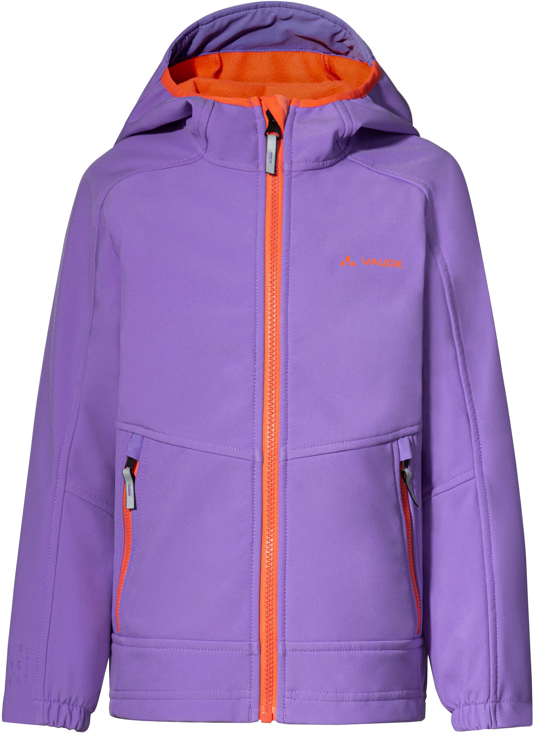 Winddichte Softshelljacke mit Kapuze; Kinnschutz am Kragen; durchgehender, unterlegter Frontreißverschluss; 2 Reißverschlusstaschen; vorgeformte Ärmel; reflektierende Details; Namensschild bis Größe 122/128; mit dauerhaft wasserabweisendem, ohne PFC hergestelltem Eco Finish; Grüner Knopf- und Green Shape-Produkt; mit recycelten Materialien hergestellt; Material 100% Polyester (recycelt), Material II 100% Polyurethan.