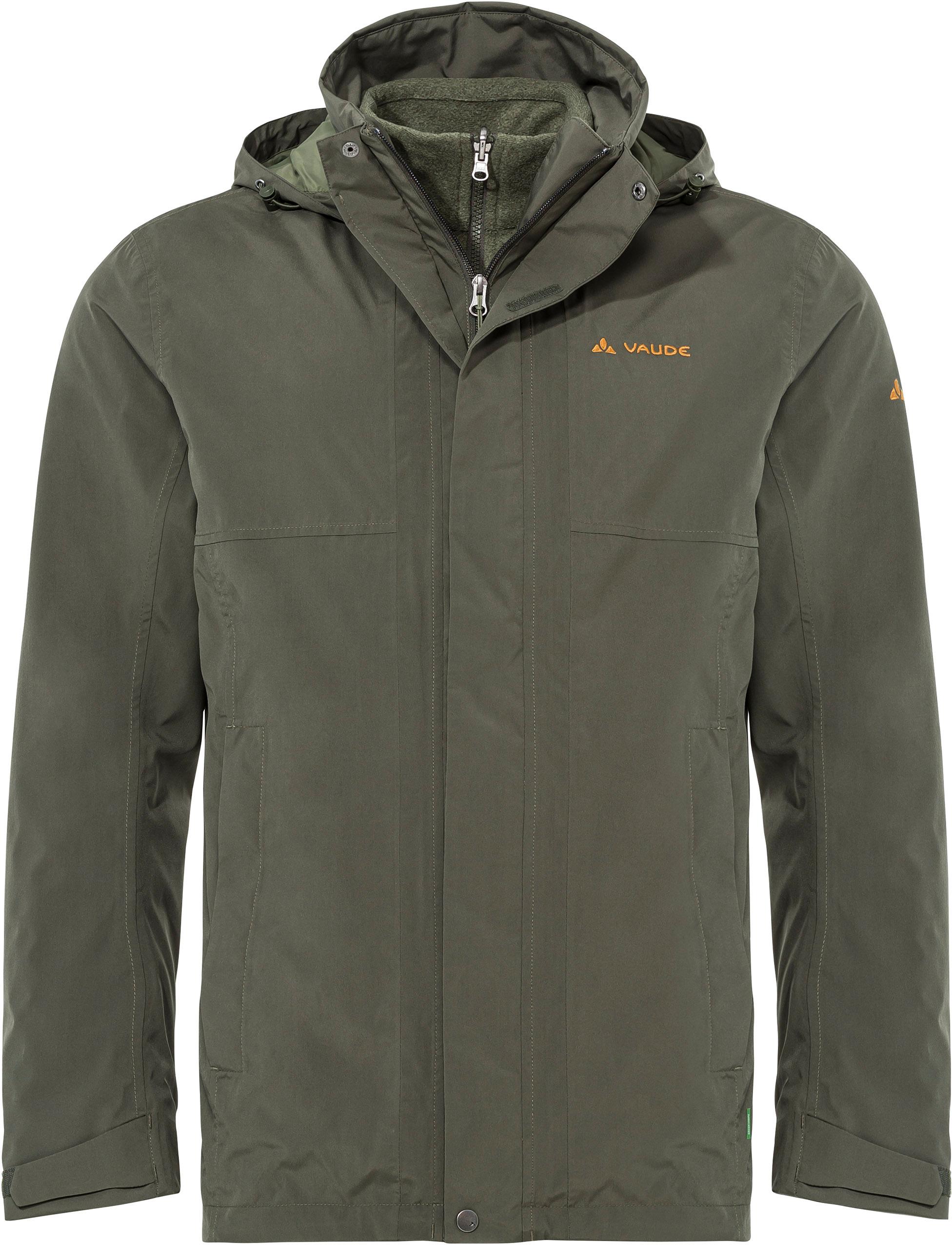 Eine vielseitige Wanderjacke für alle, die einen wetterfesten, natürlichen aber auch einen sportiven Begleiter suchen. Diese klassische Trekkingjacke hat ein starkes Auftreten und eine wasser- und winddichte PU-Membran, die locker mit wechselhaftem Bergwetter zurechtkommt. Damit Kopf und Nacken beim Wandern vor Regen und Wind geschützt sind, lässt sich die regulierbare Kapuze rasch aus dem Kragen holen. Für zusätzlichen Wärmeschutz kann der Saum der Outdoorjacke durch die Taschen hindurch enger gestellt werden. Die bequeme Innenjacke aus angerautem Fleece wärmt den Körper auf eine Art, die auch bei Anstrengung noch angenehm ist. Durch die Kombinierbarkeit der beiden Jacken wird eine sehr große Bandbreite an Wetter- und Temperaturbedingungen abgedeckt. Diese Doppeljacke zum Wandern ist mit Eco Finish umweltfreundlich wasserabweisend ohne Fluorcarbone (PFC) hergestellt. Das VAUDE Green Shape-Label steht für ein umweltfreundliches, funktionelles Produkt aus nachhaltigen und bluesign™ zertifizierten Materialien.