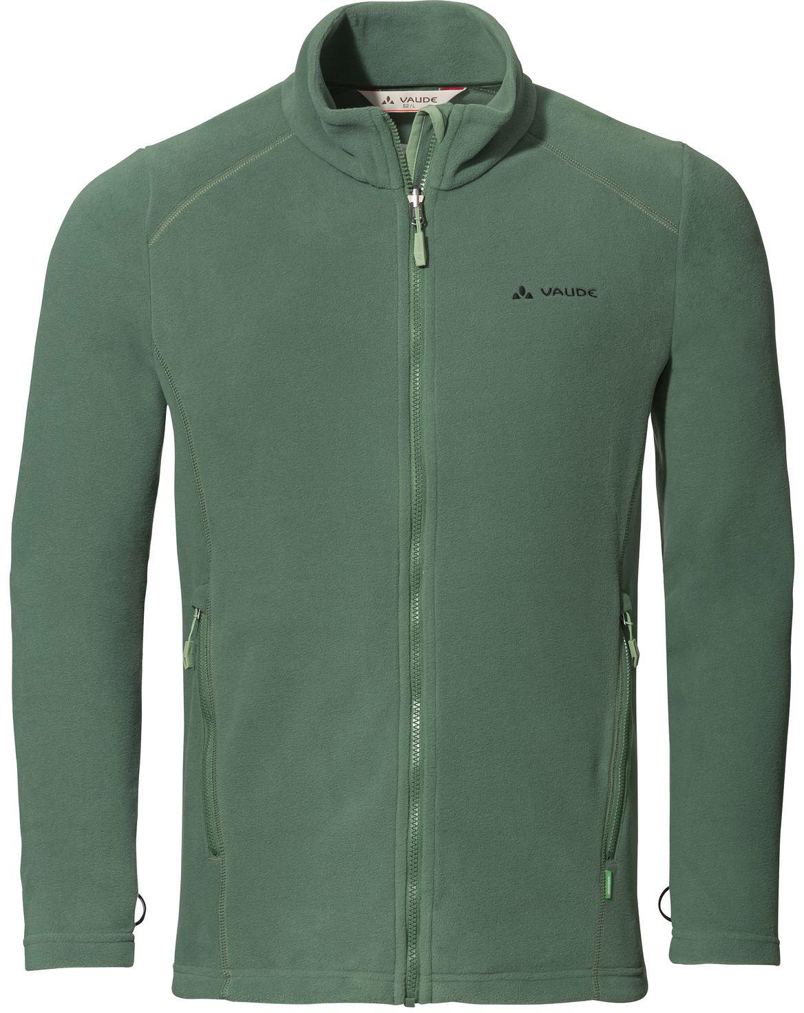 Unsere Fleecejacke zum Einkuscheln. Das weiche, hochwertige Polartec®-Fleece und der komfortable Schnitt machen aus der Jacke einen bequemen Allrounder. Ob bei moderaten Wanderungen, beim Spazierengehen oder gemütlich zu Hause – die Fleecejacke wärmt drunter und drüber. Sie lässt sich zudem in eine 3in1 Jacke mit Zip-in Label einzippen wie z. B. der Rosemoor 3in1 Jacket. Die Reißverschluss-Fronttaschen verwahren wichtige Kleinigkeiten. Der Kordelzug am Bund lässt sich durch die Taschen verstellen und sorgt für extra Komfort. Men's Rosemoor Fleece Jacket II wurde nachhaltig aus recyceltem Polyester erstellt und ist als wärmende Zwischenschicht oder als Jacke von Frühjahr bis Herbst ein pflegeleichter, unkomplizierter Begleiter das ganze Jahr hindurch. Unser VAUDE Green Shape-Label steht für für ein umweltfreundliches, funktionelles Produkt aus nachhaltigen und bluesign® zertifizierten Materialien.